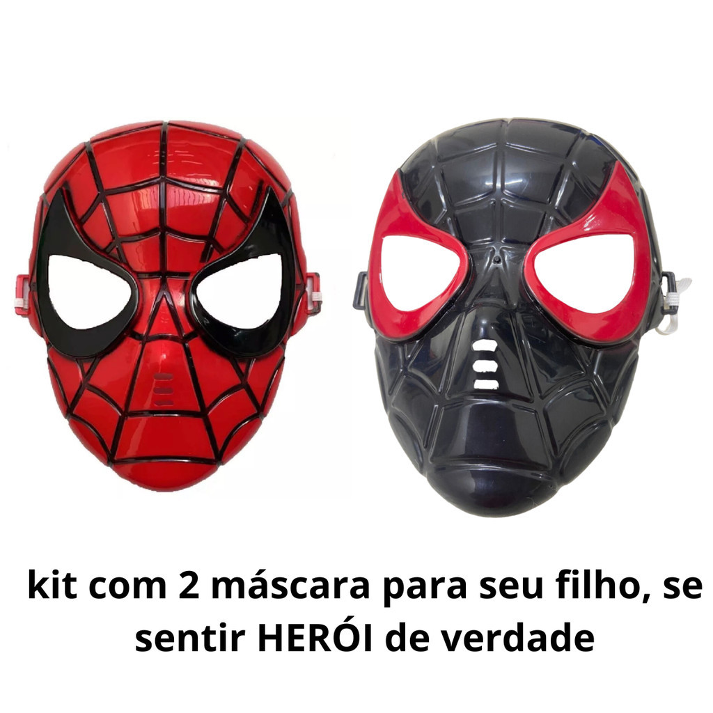 Kit 2 Máscaras Plástico Marvel Homem Aranha + Miles Morales Cor Preto/Vermelho Spider