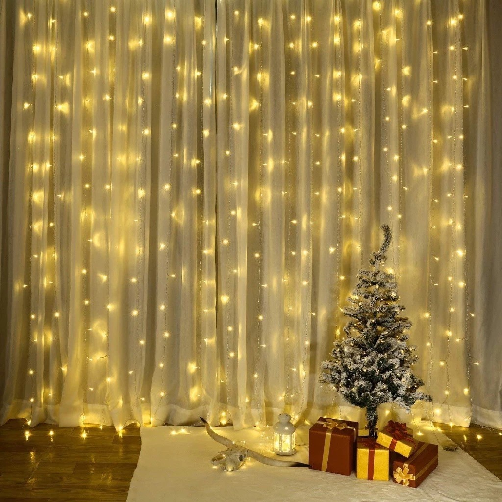 Cortina Led Luz Cortina 8 Função Controle Romântica Para Casamento De Natal Ao Ar Livre