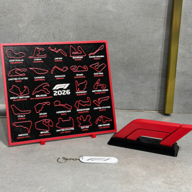 Quadro Circuitos F1 2026 Com Suporte + Chaveiro F1
