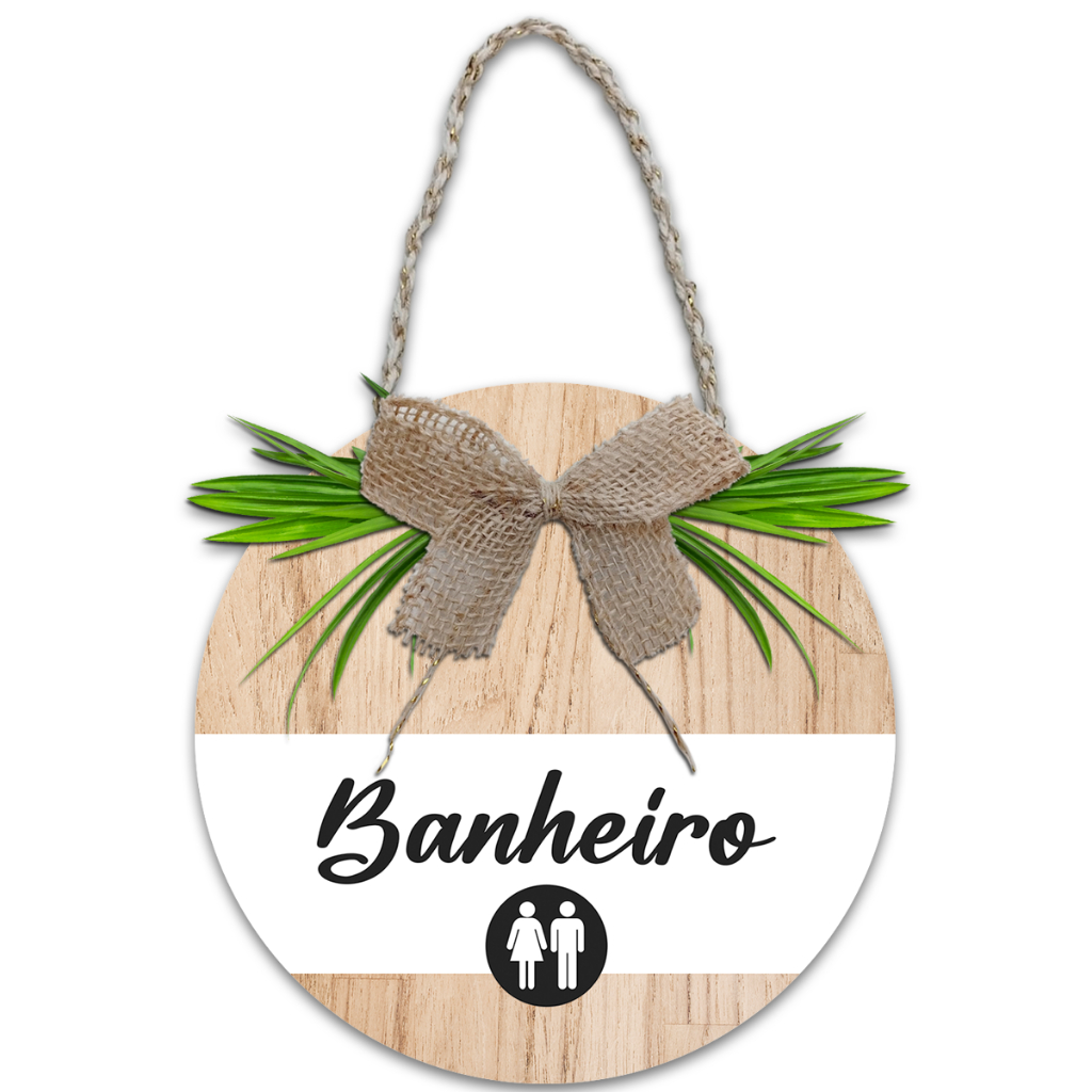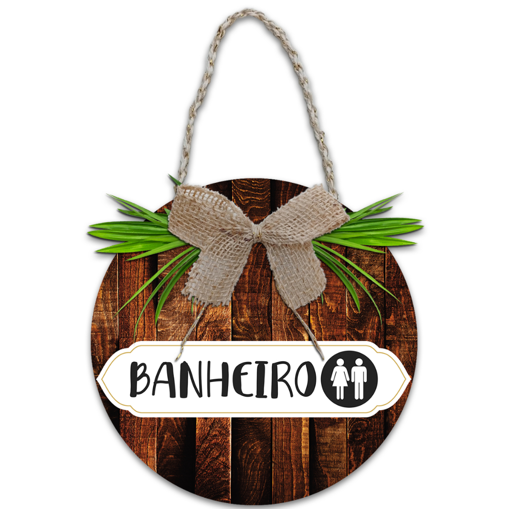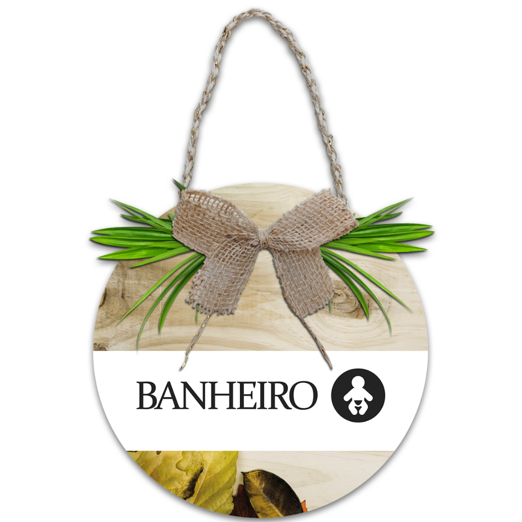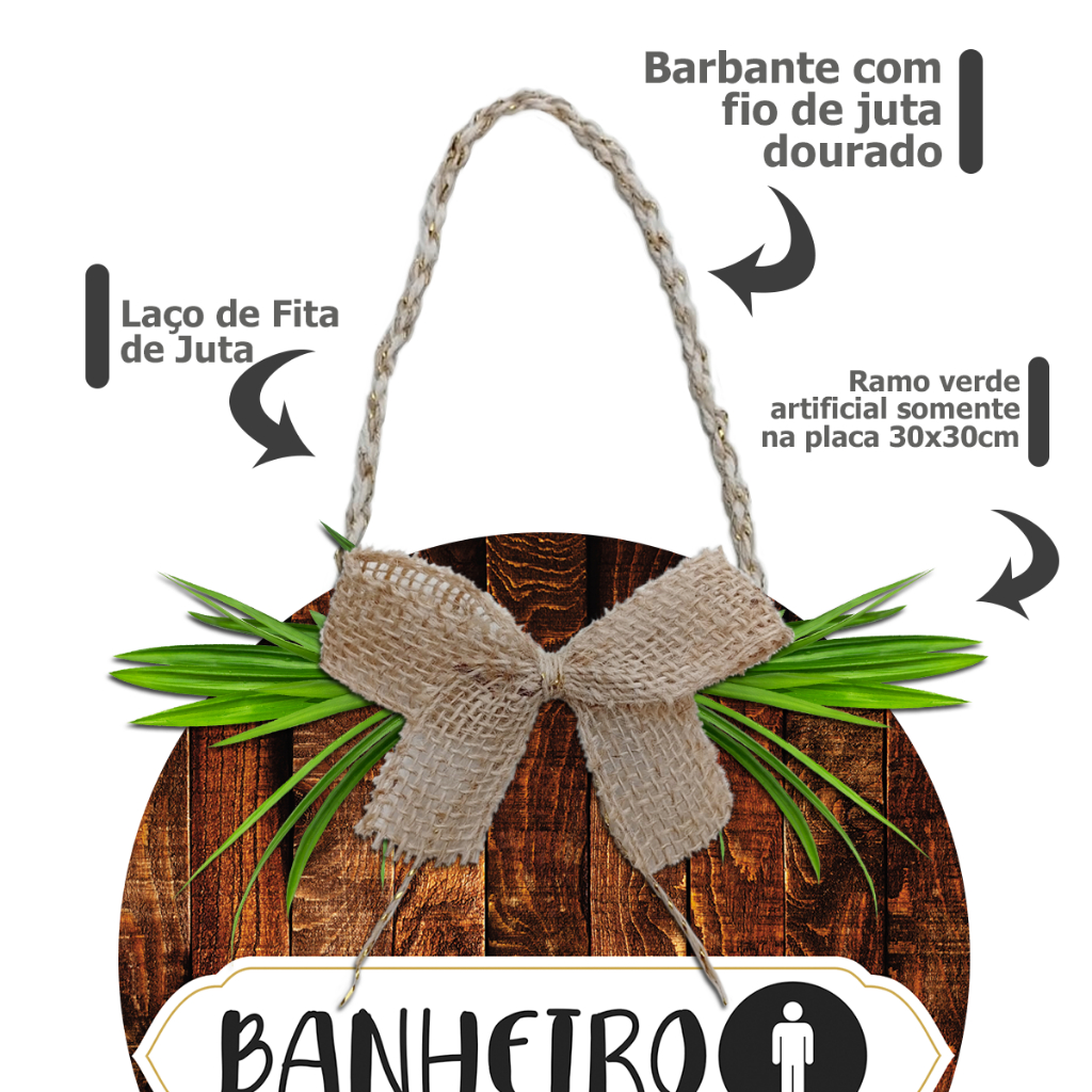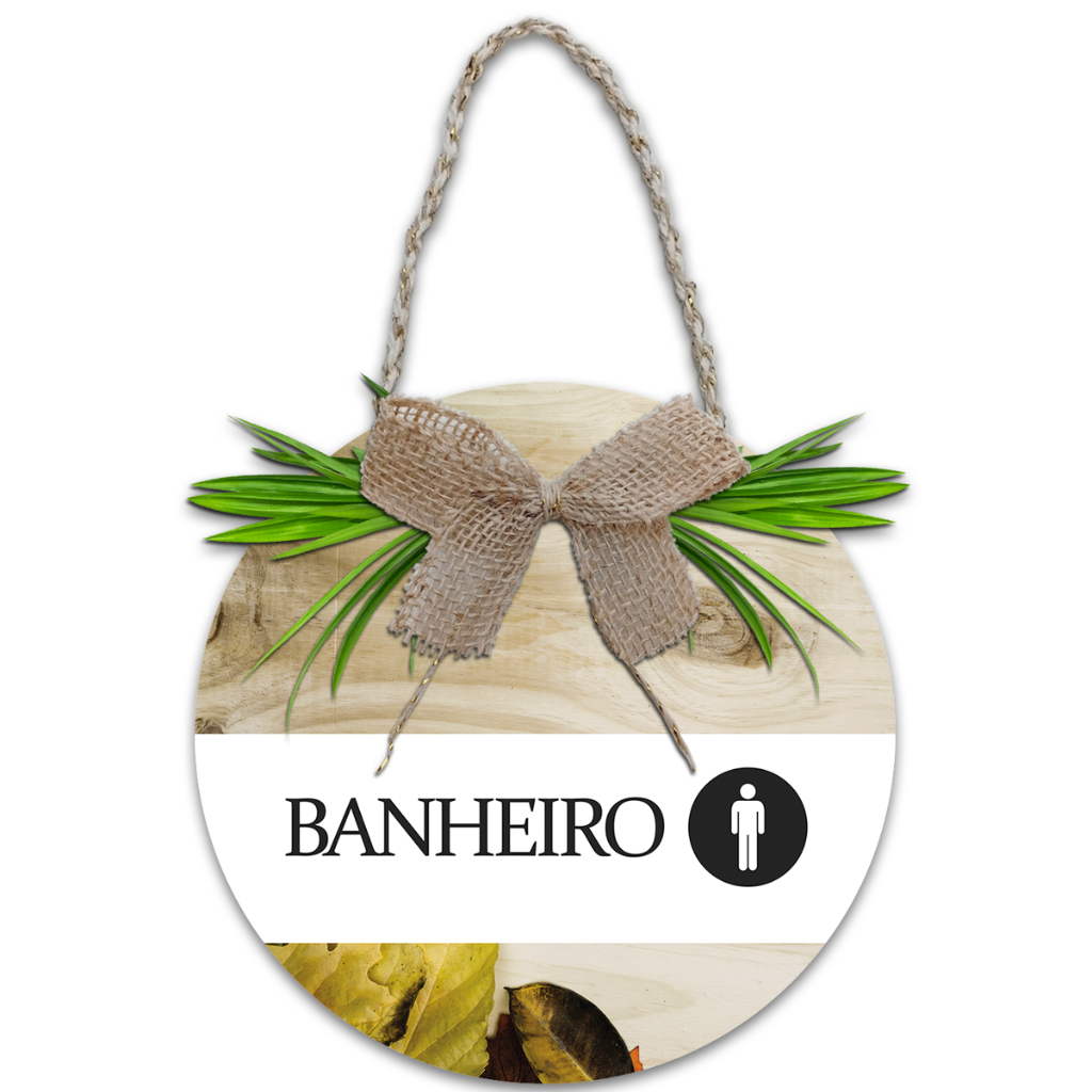 Placa de porta Banheiro Lavabo Toalete redonda MDF floral Madeira Luxo Guirlanda Feminino Masculino 30cm