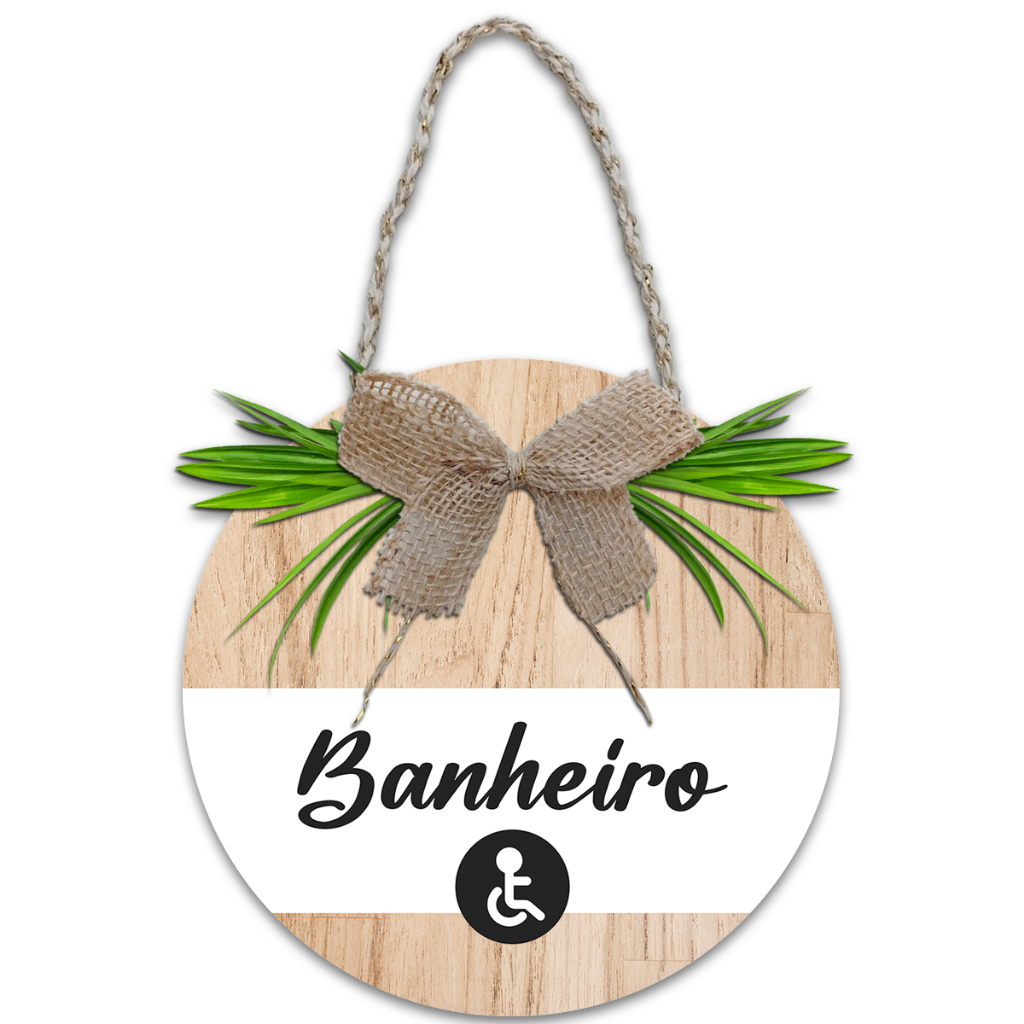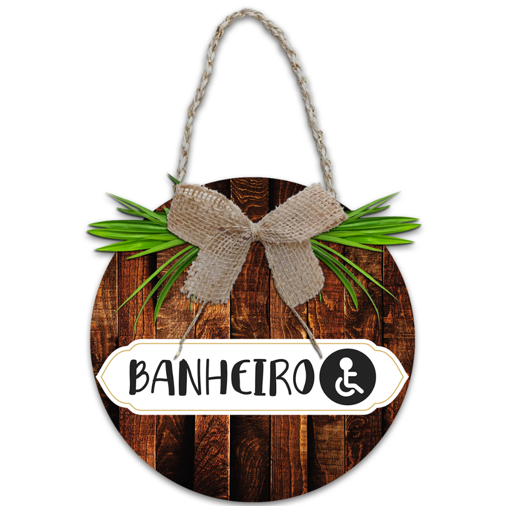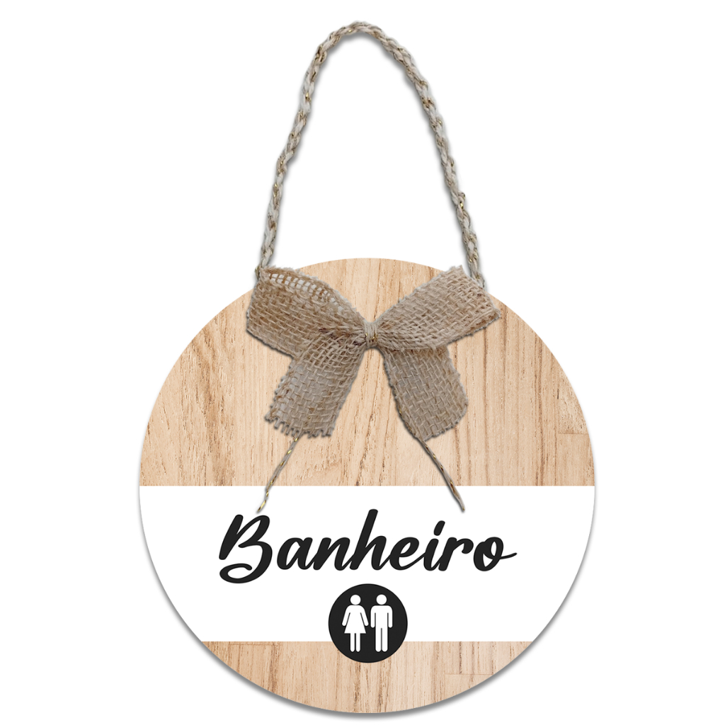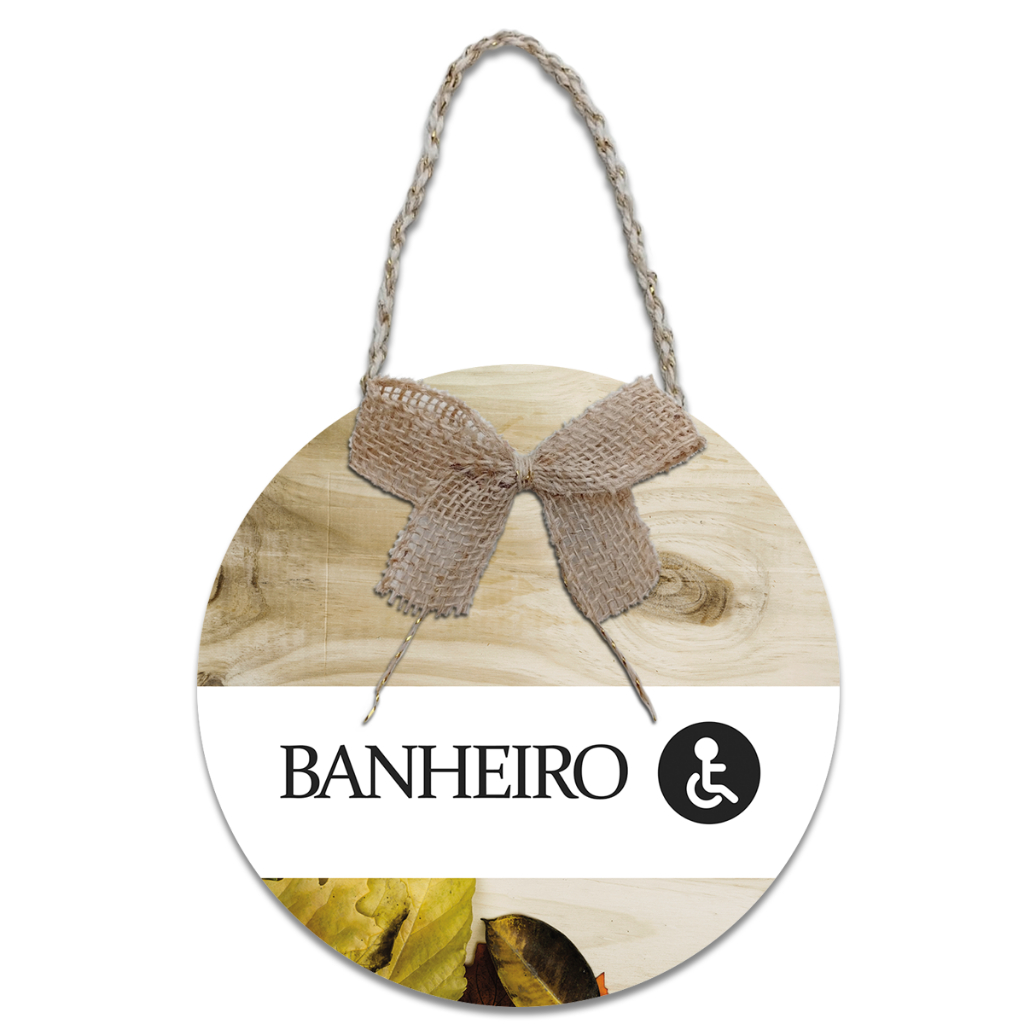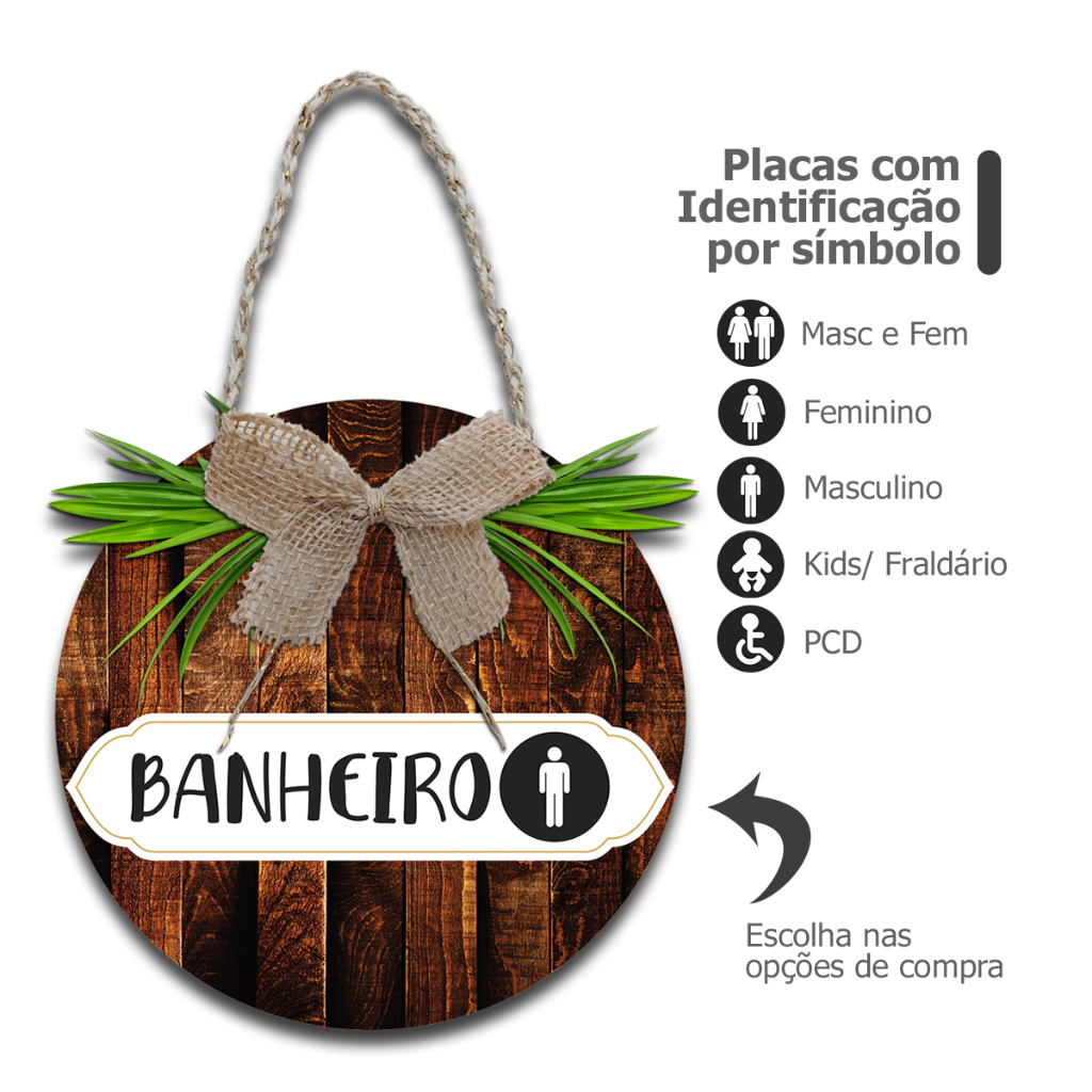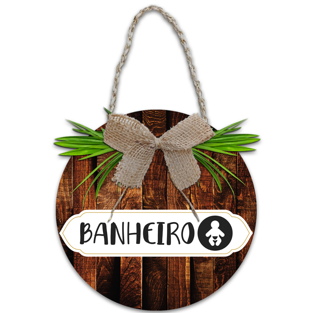 Placa de porta Banheiro Lavabo Toalete redonda MDF floral Madeira Luxo Guirlanda Feminino Masculino 30cm