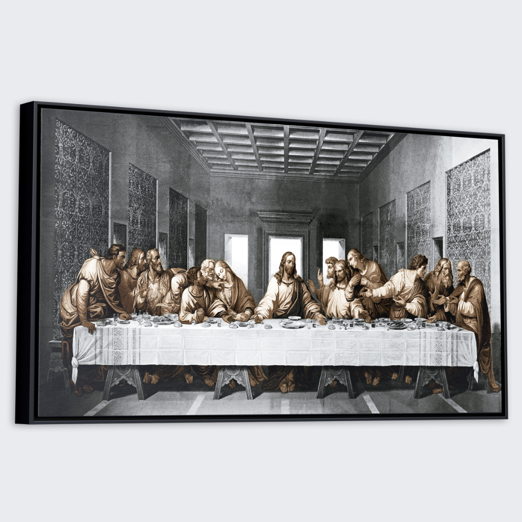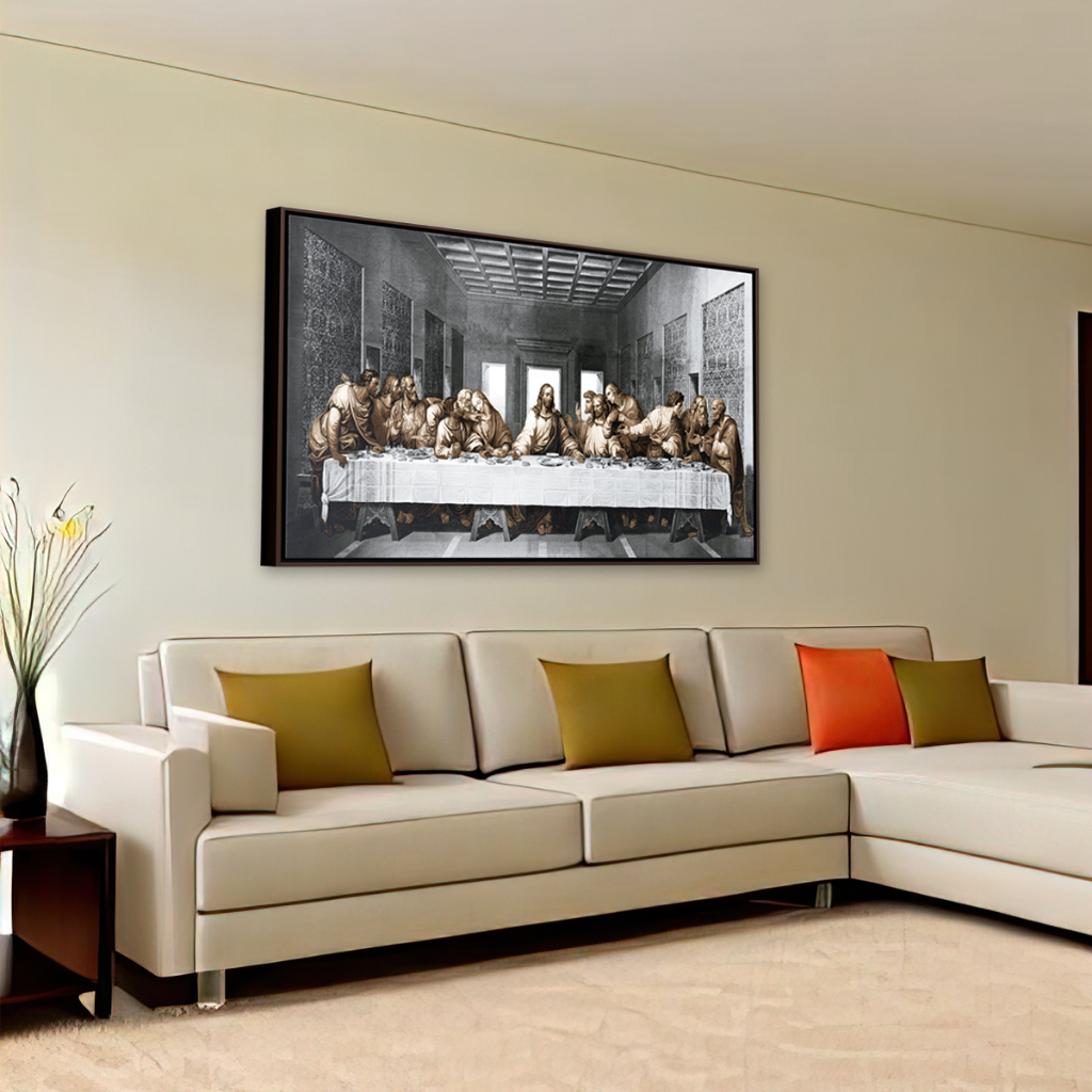Quadro C/ Moldura Ceia Com Jesus Canvas Ref13 - 63x93cm