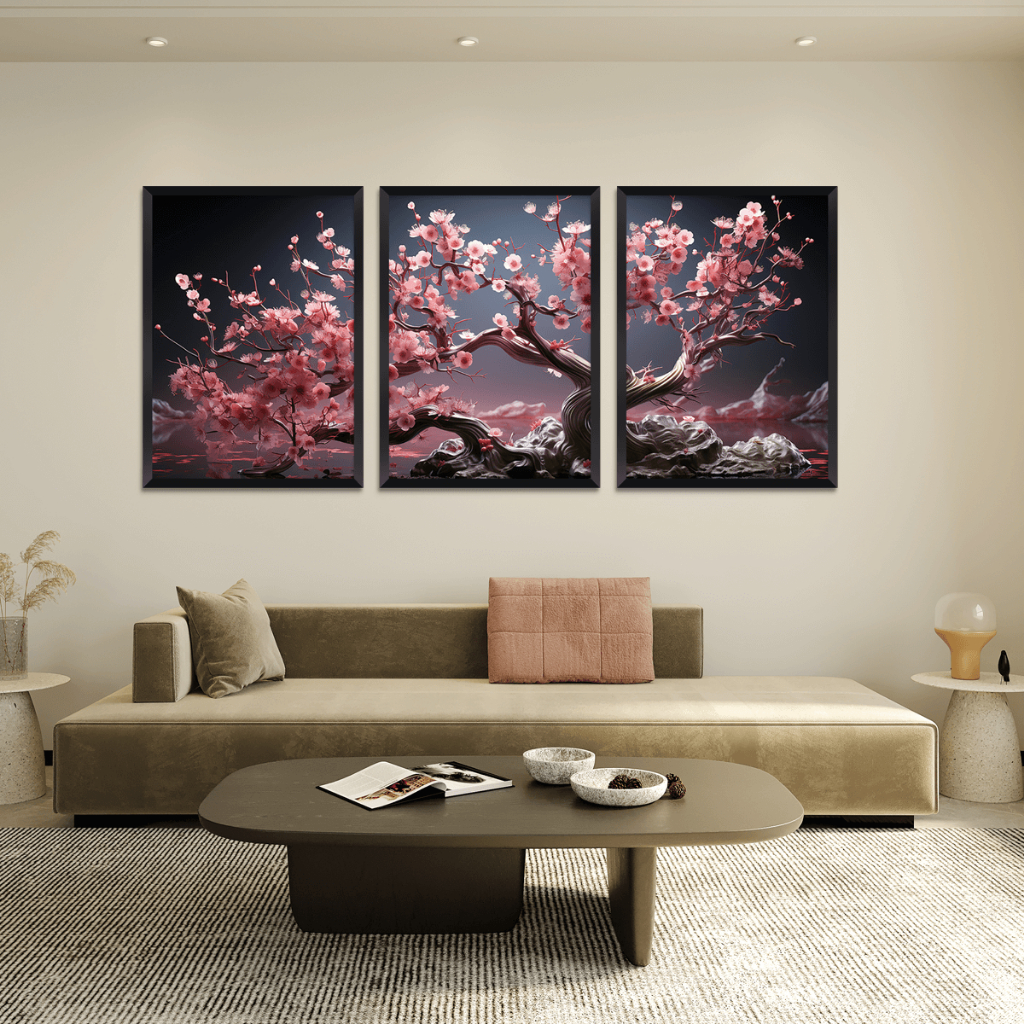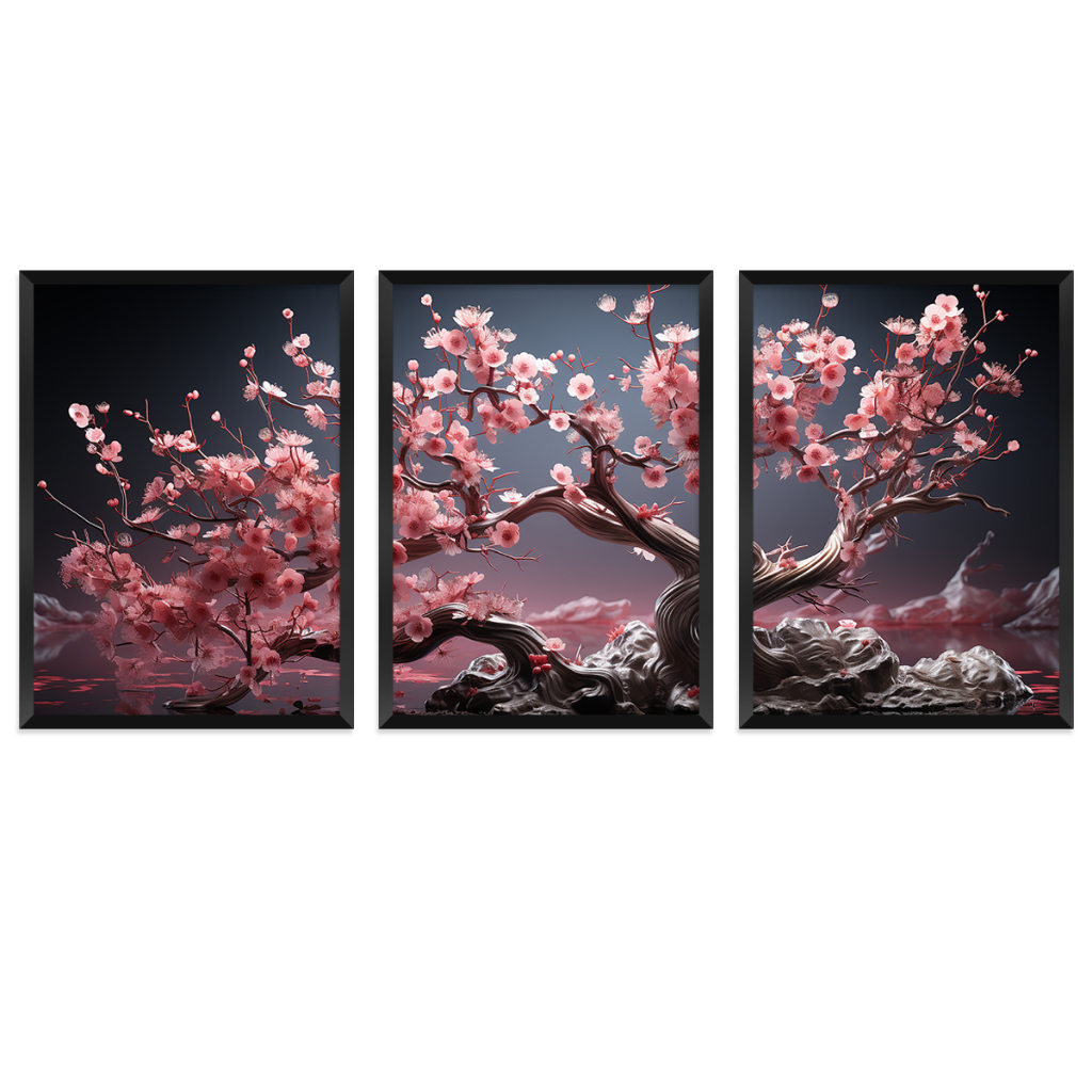 3 Quadros Elegância em Flor de Cerejeira 50x70cm