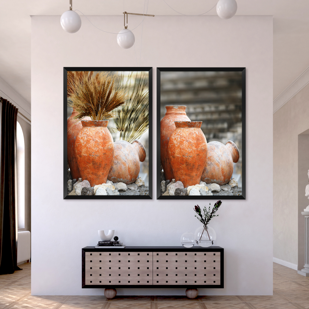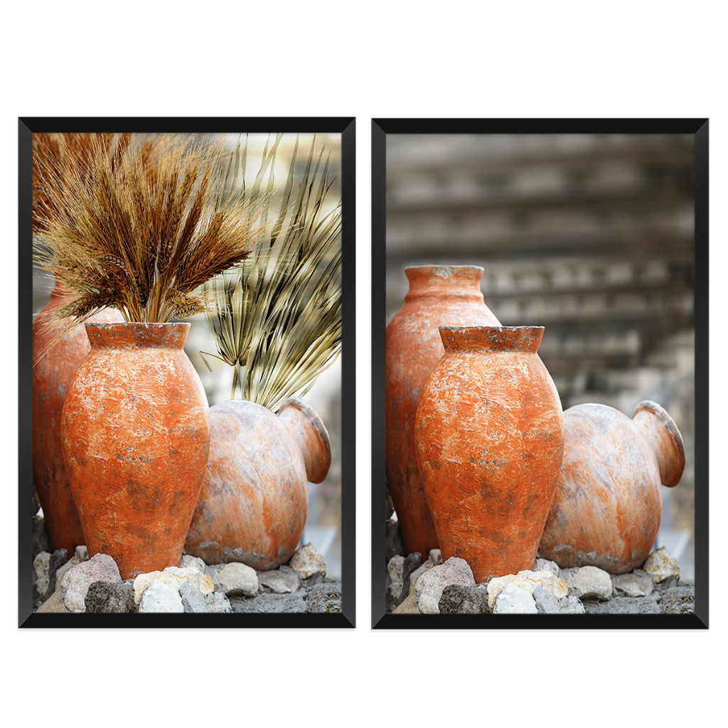 Quadro Duplo Abstrato Vaso de Barro 002 60x90cm