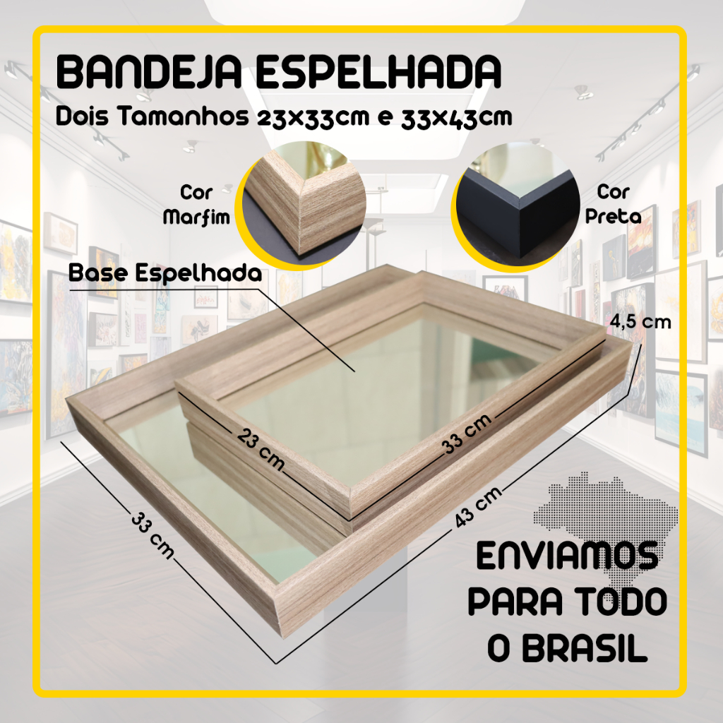 Kit 2 Bandejas Espelhadas de Mesa Para Sala, Quarto, Cozinha, Bebidas Bar, Café, Banheiro, Decoração