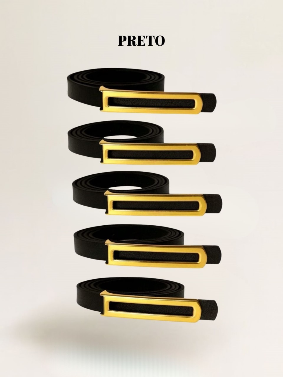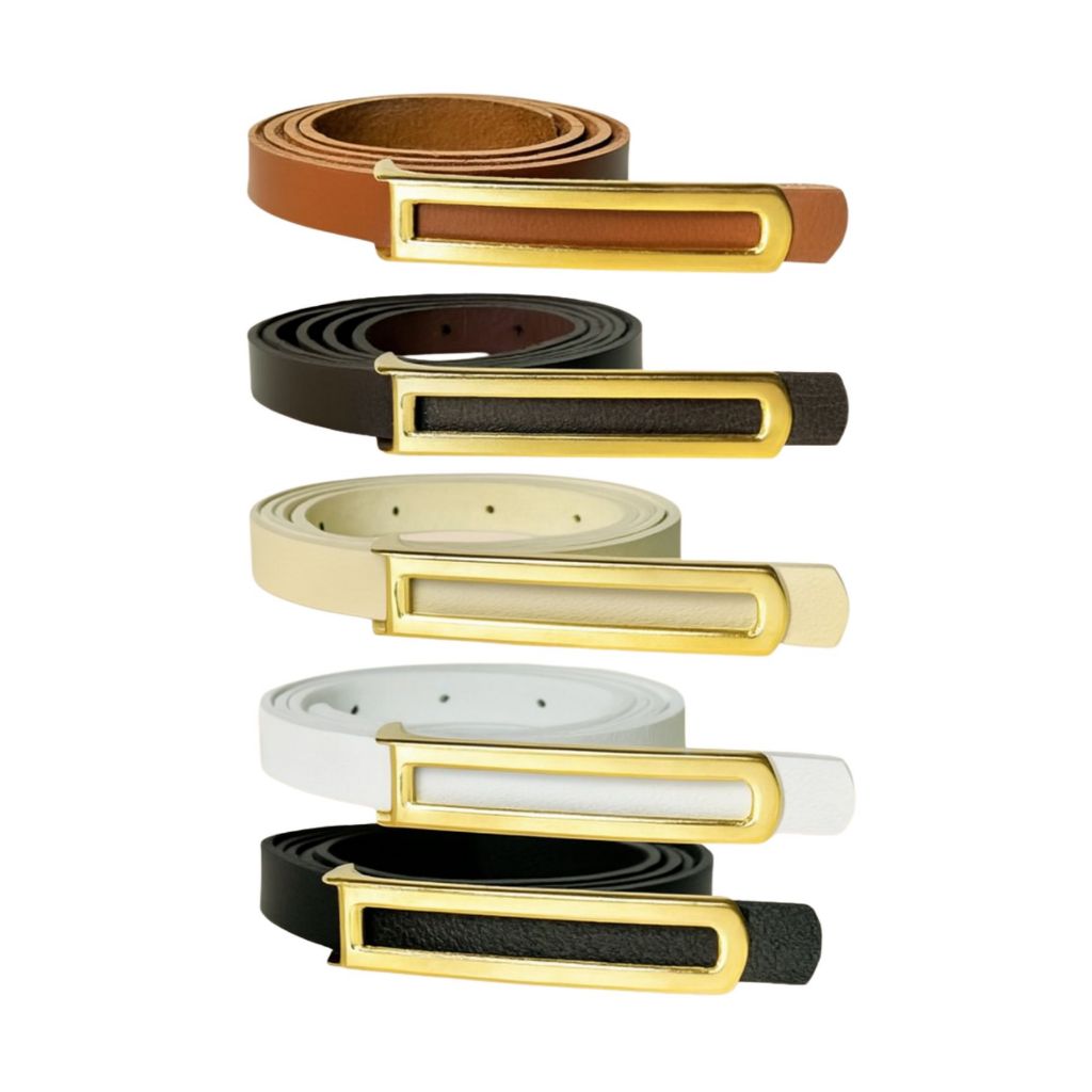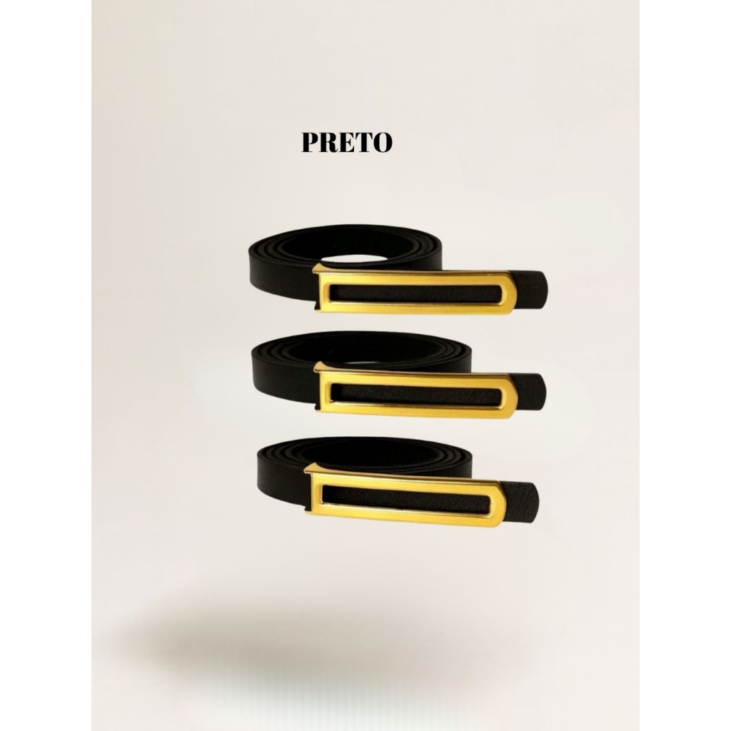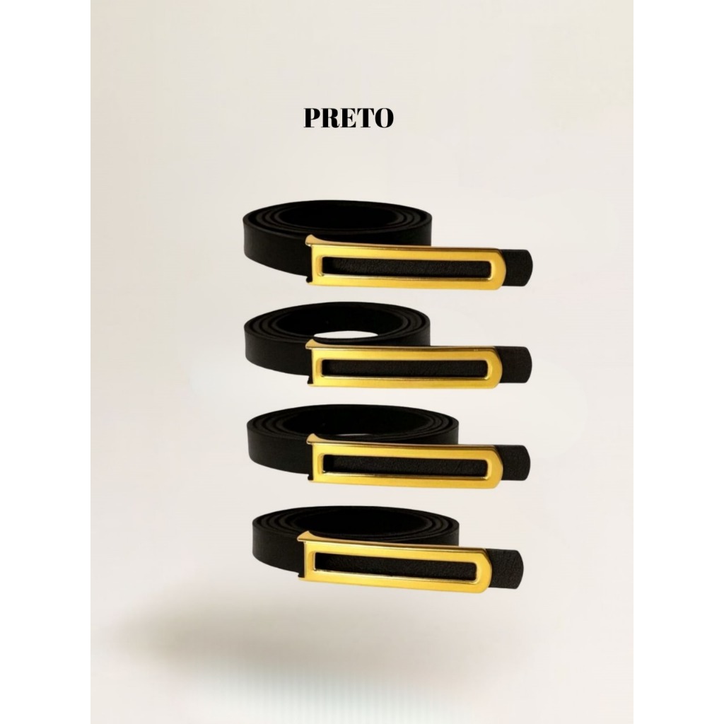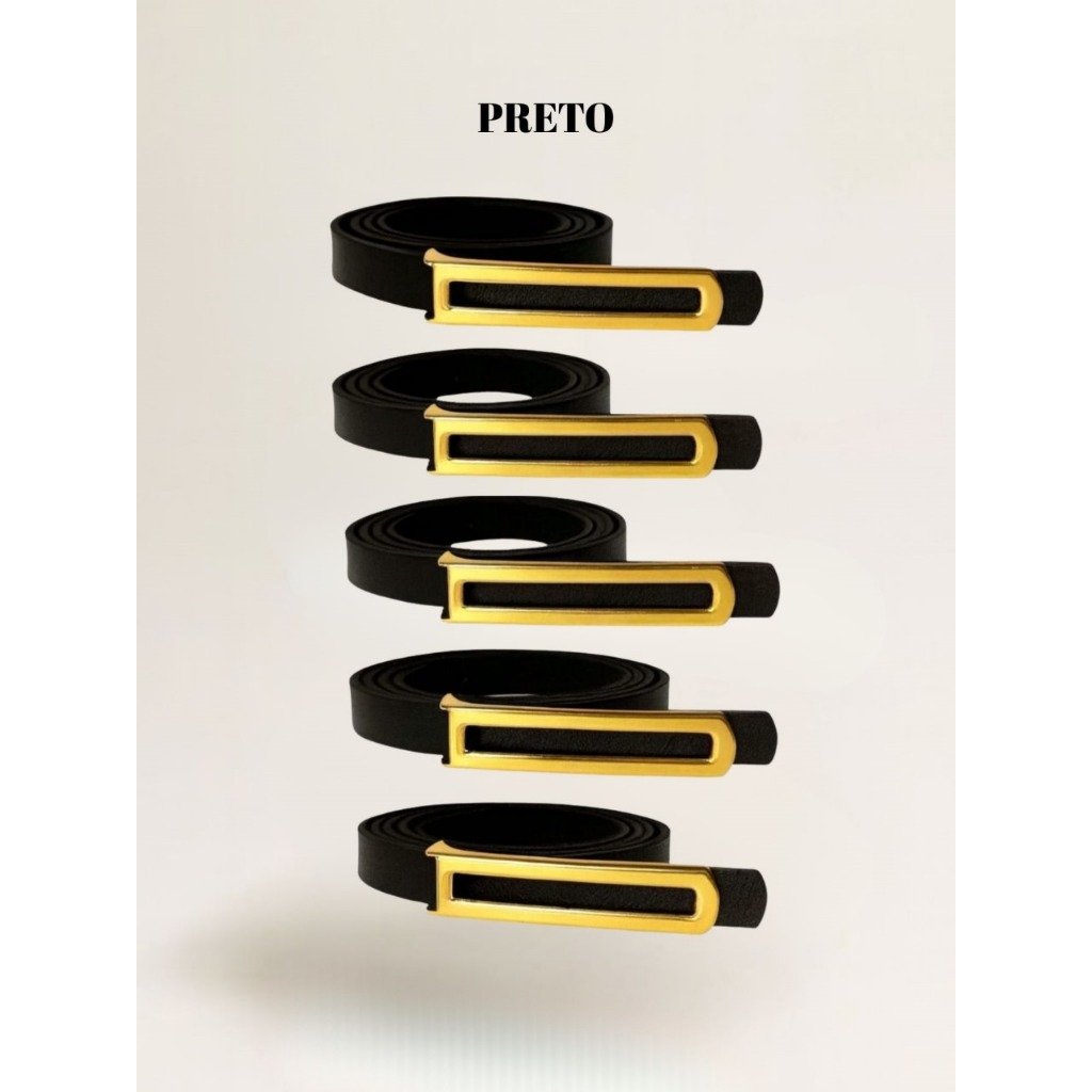 kit 5 Cinto Fino Feminino Pra Calça, Vestido, Short e Macacão Fivela Dourada