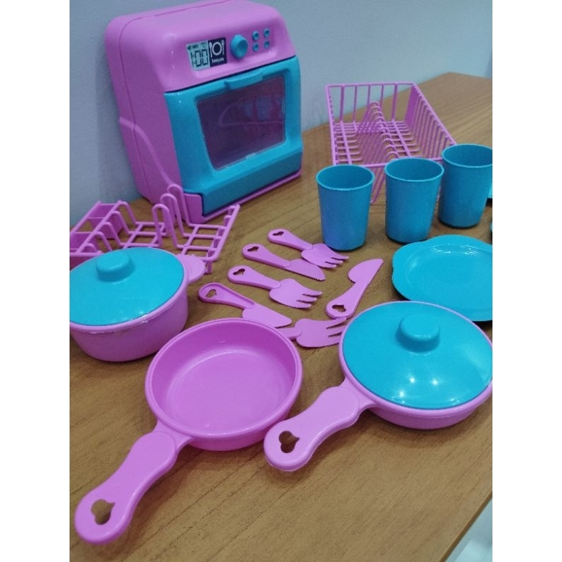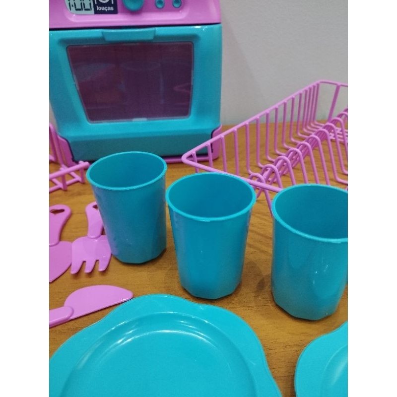 kit Lavando a Louça Infantil - Panelinhas - Escorredor de Louça - Copos - Talheres de Brinquedo - 18 peças