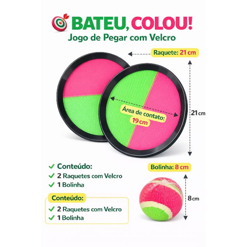 Brinquedo Bateu Colou - Jogo Raquete Bate e Gruda - Jogo Retro