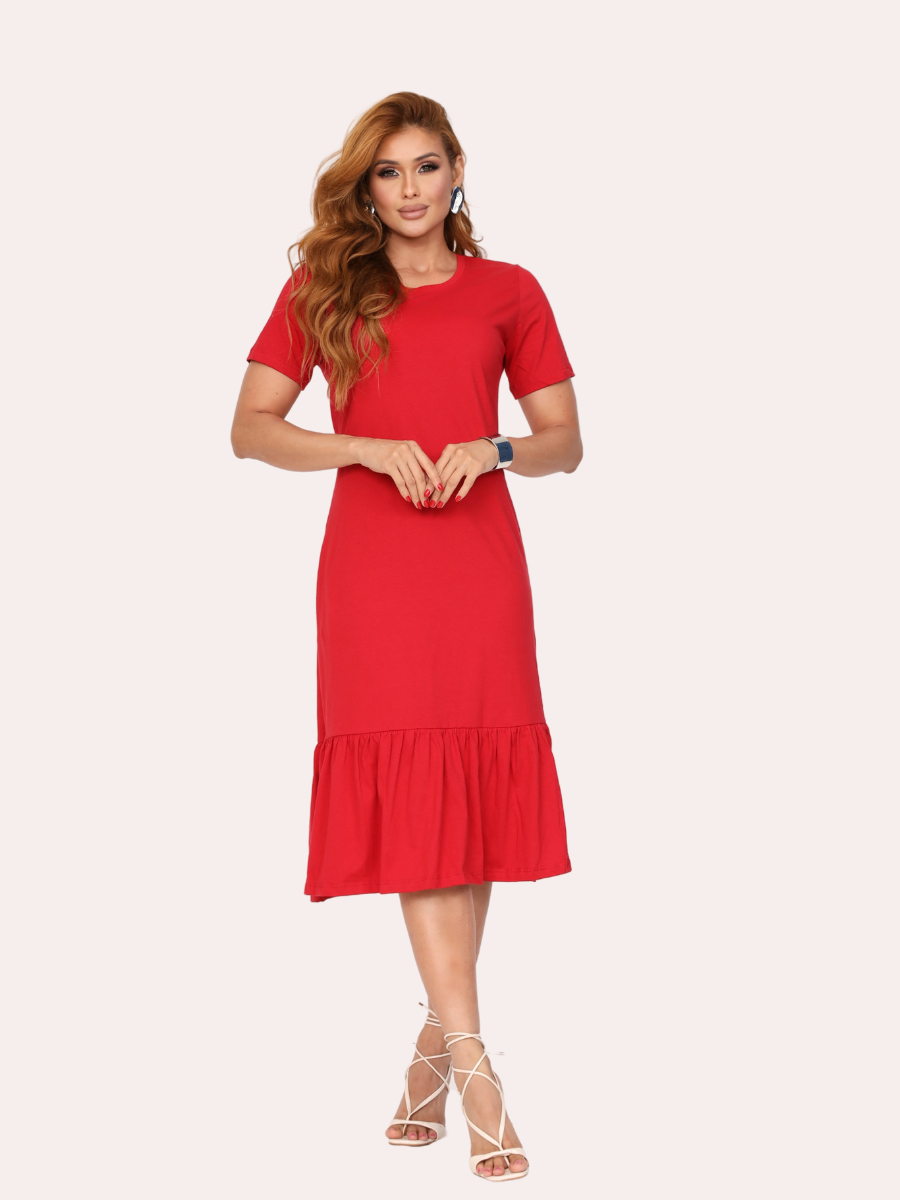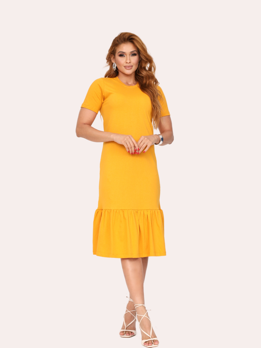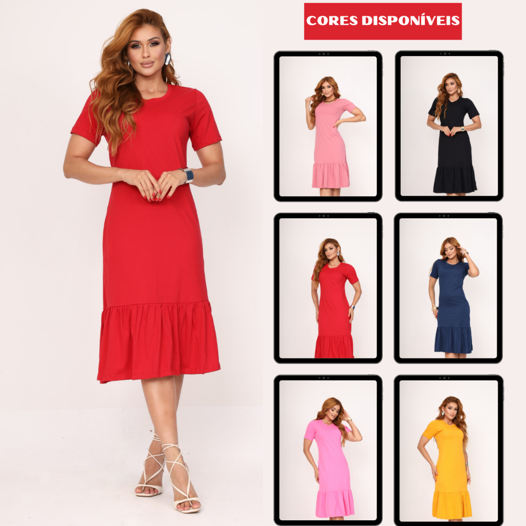 Vestido Feminino Elegante Vestido Casual Com Babado Manga Curta Algodão