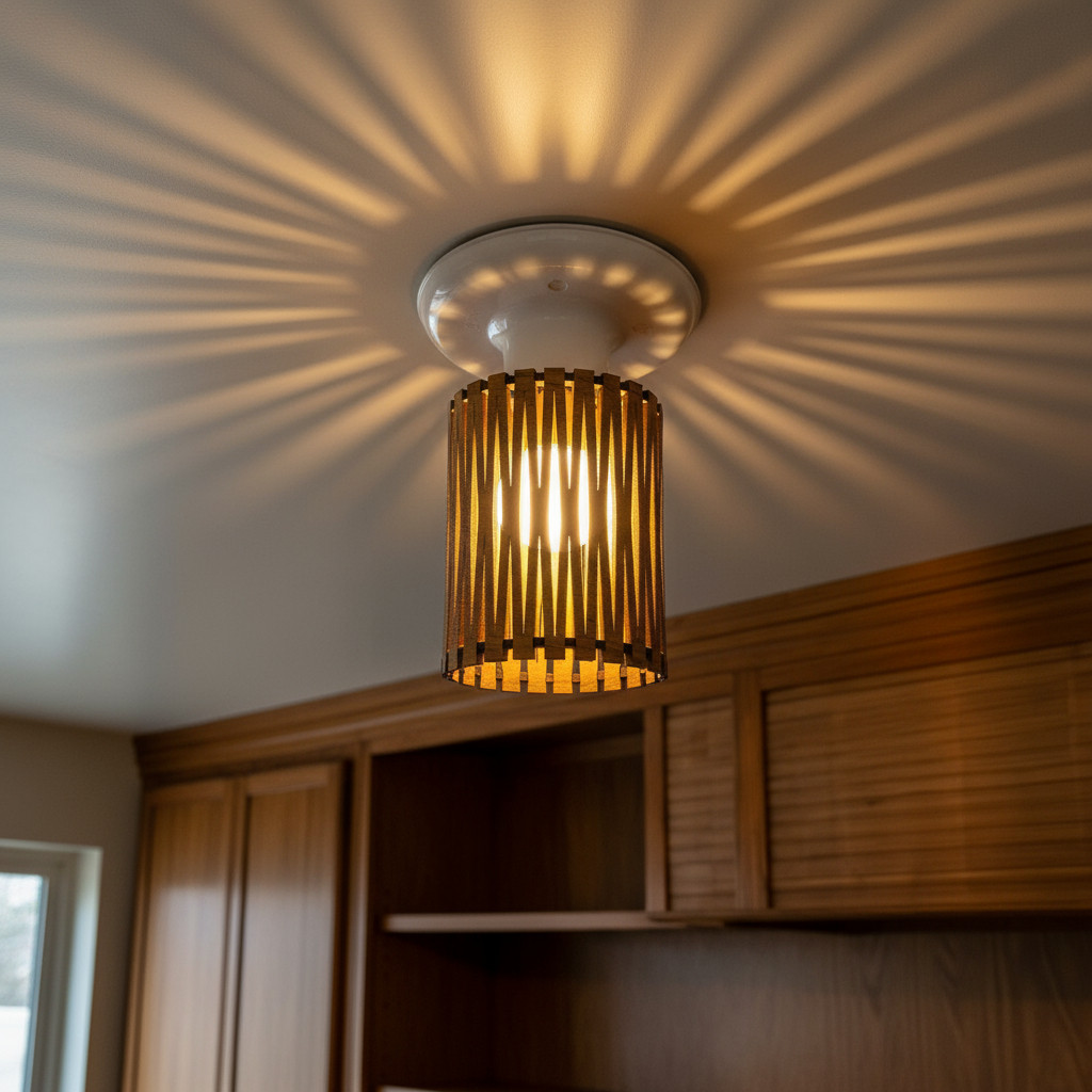 Luminária de Sobrepor Plafon em madeira natural Freijo ripado Fácil instalação