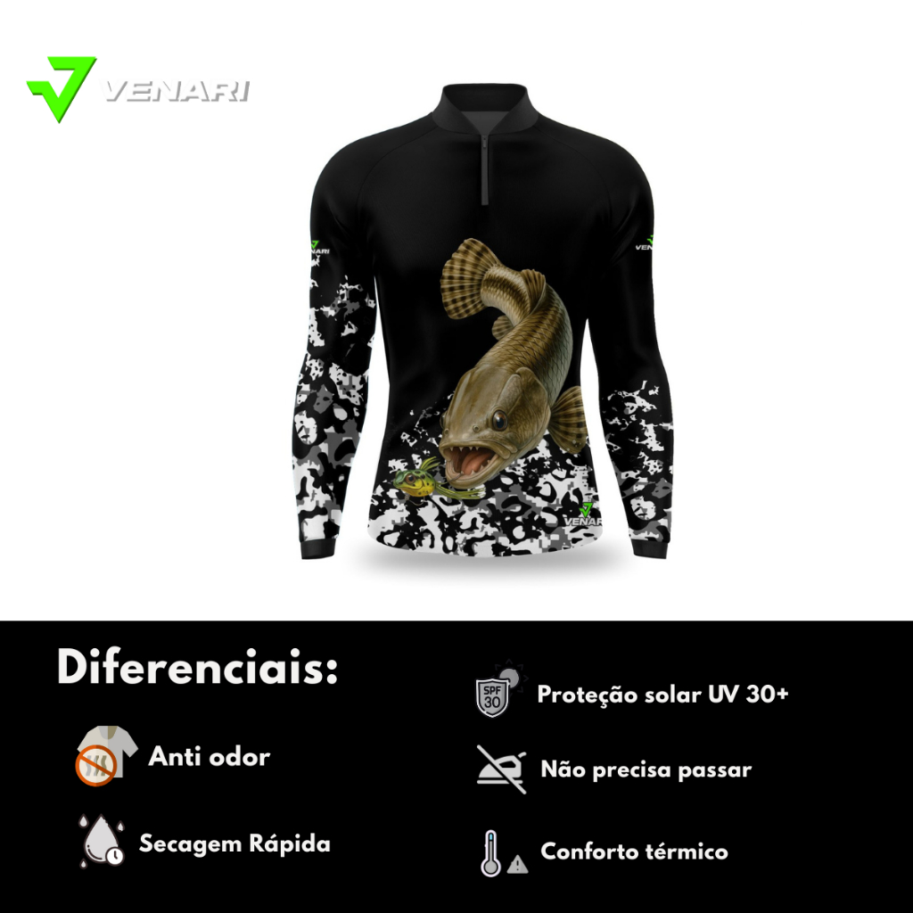 Camisa Pesca traíra Camiseta Proteção Uv50 Pescaria Camiseta Manga longa pesca