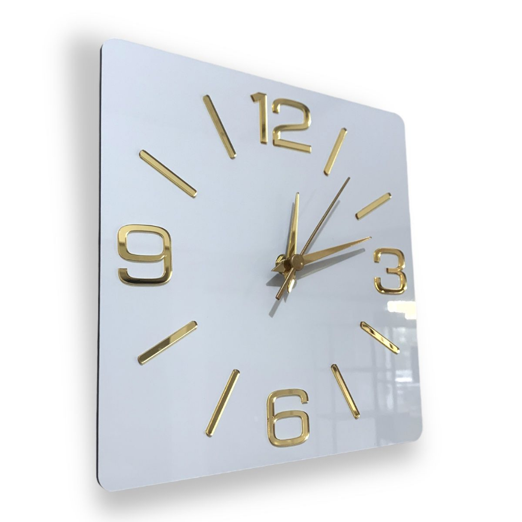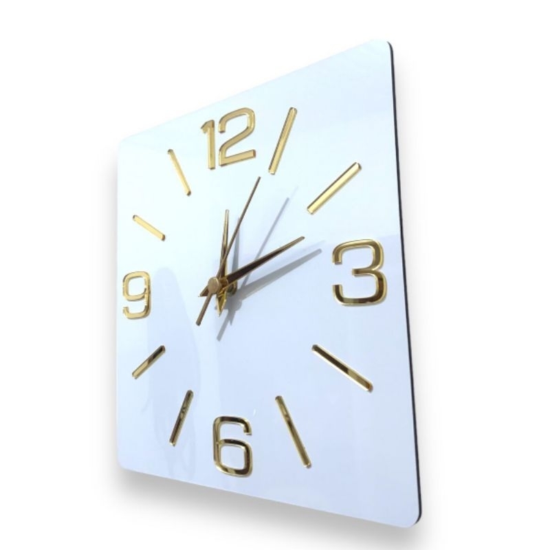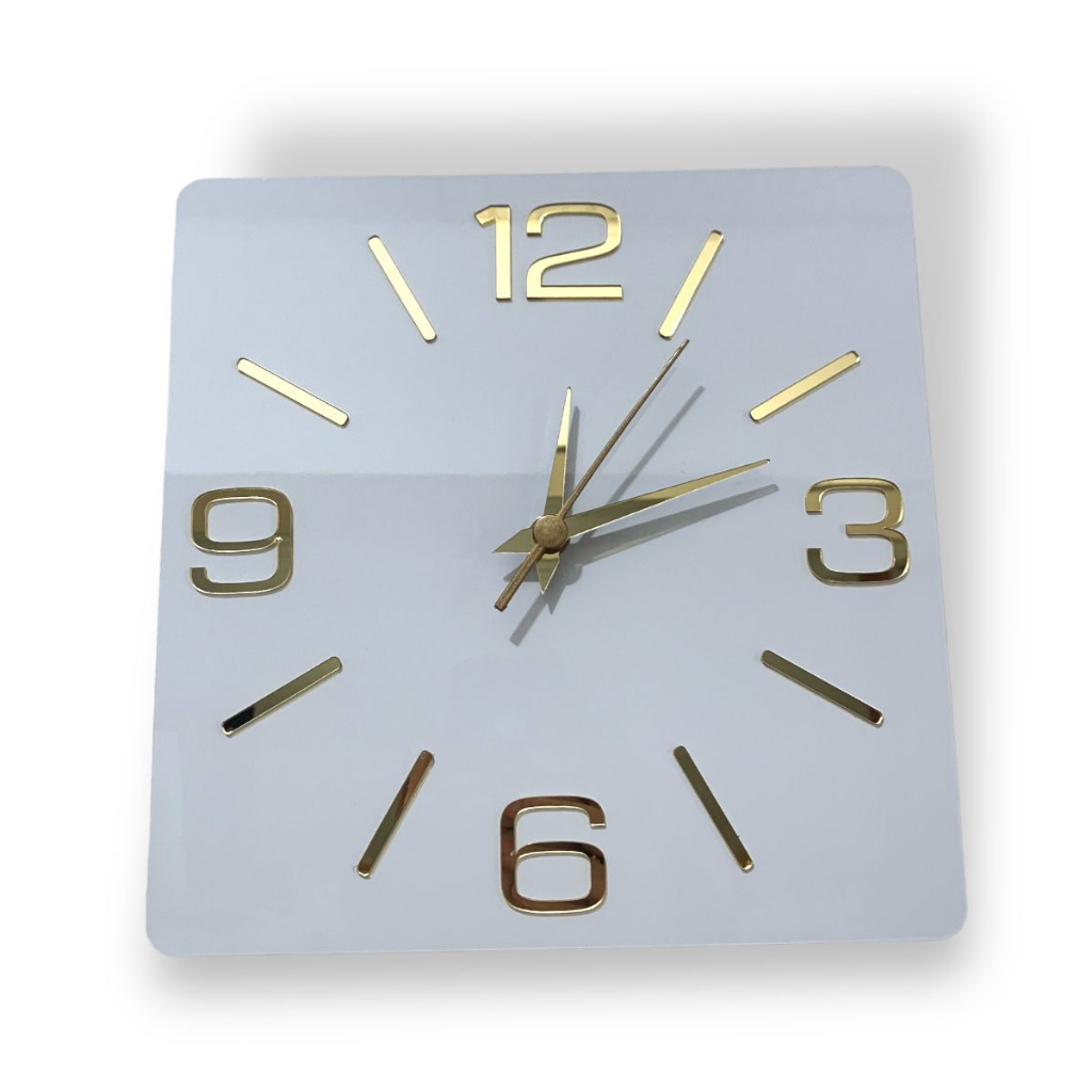 020 RELÓGIO DE PAREDE BRANCO DOURADO QUADRADO