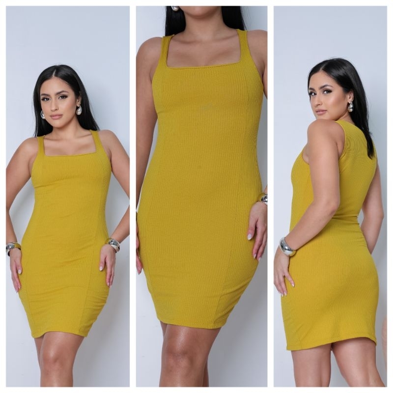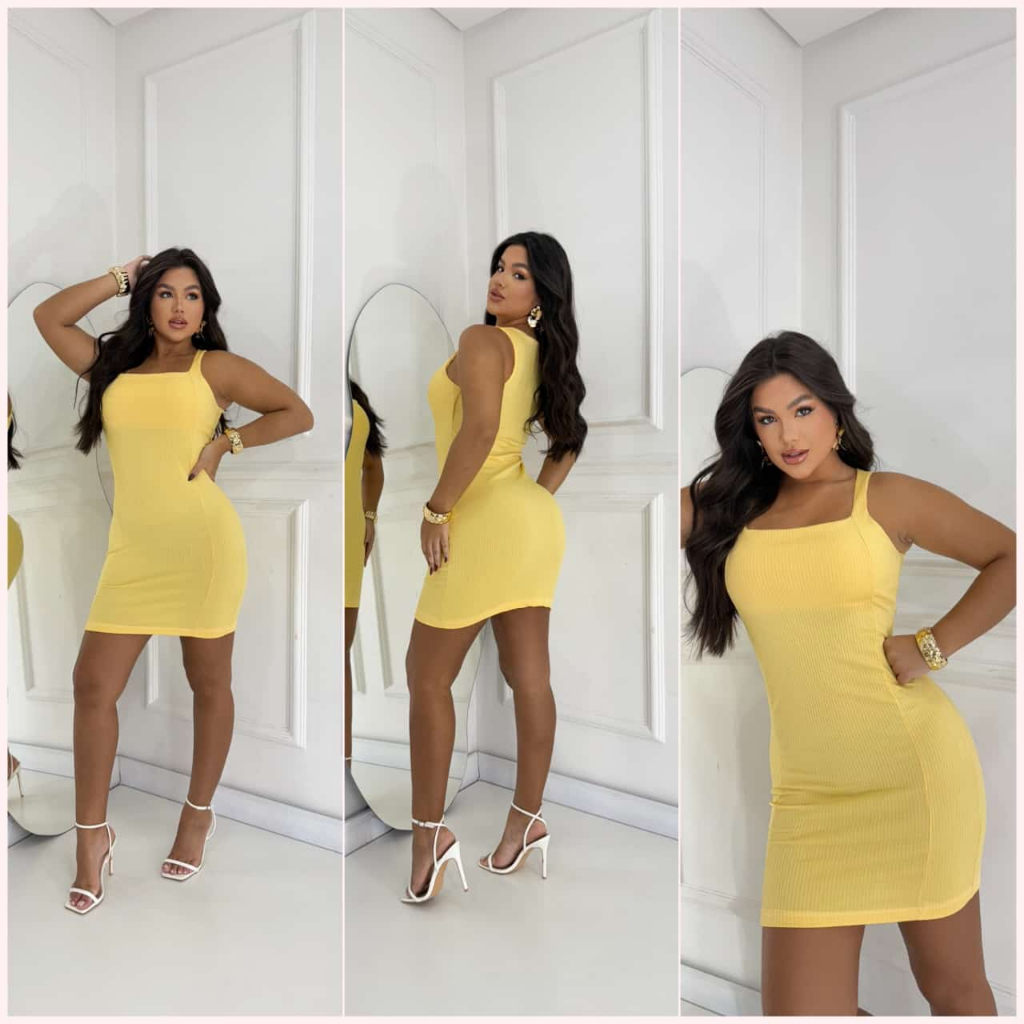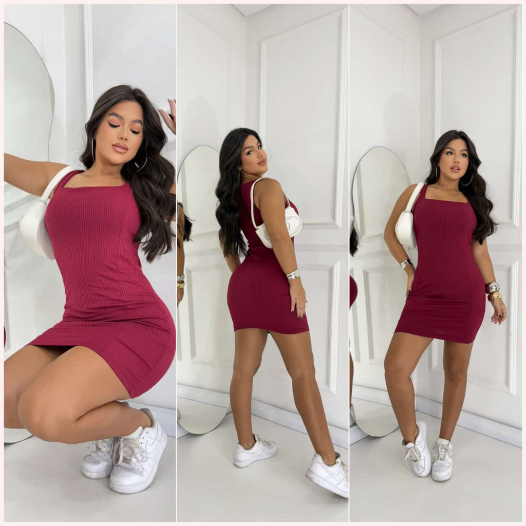 Vestido Feminino Curto Decote Quadrado - Elegante/Casual