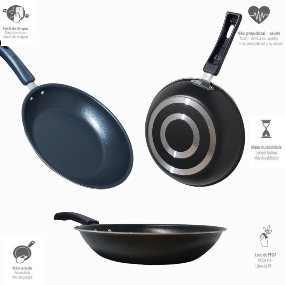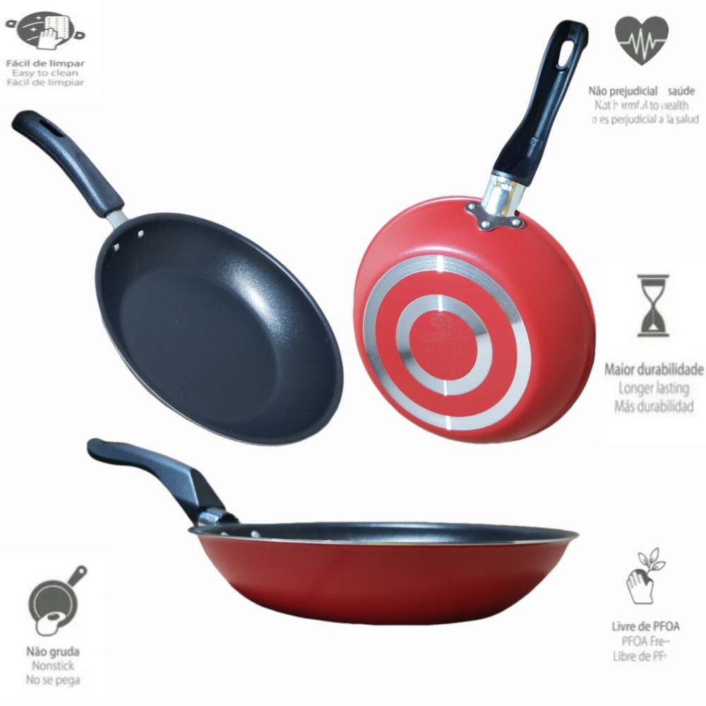 Conjunto Frigideira Antiaderente Color n16, 18 e 22 + 1 Espátula de Nylon