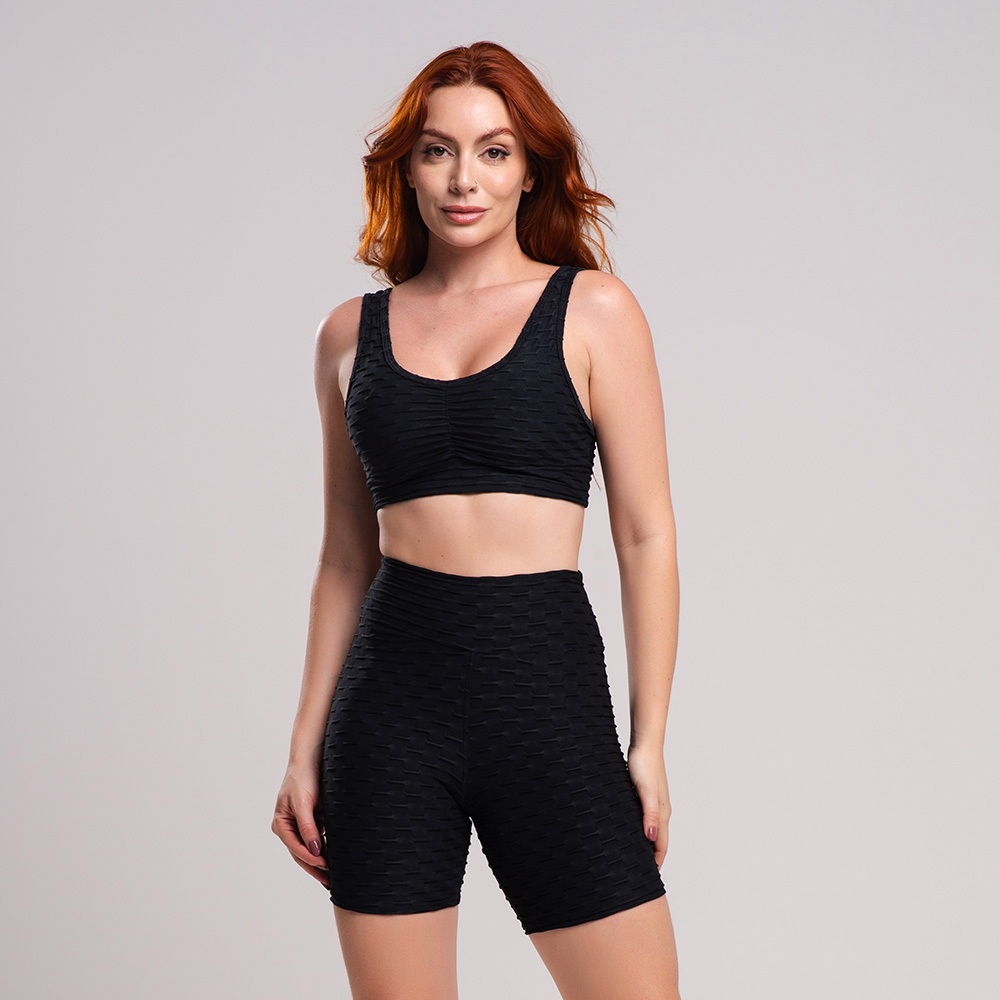 Conjunto fitness academia zero transparência short bolha a e top bolha alça