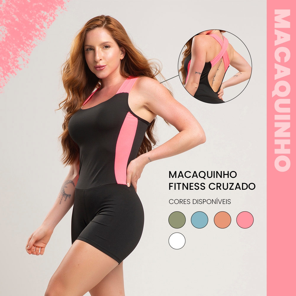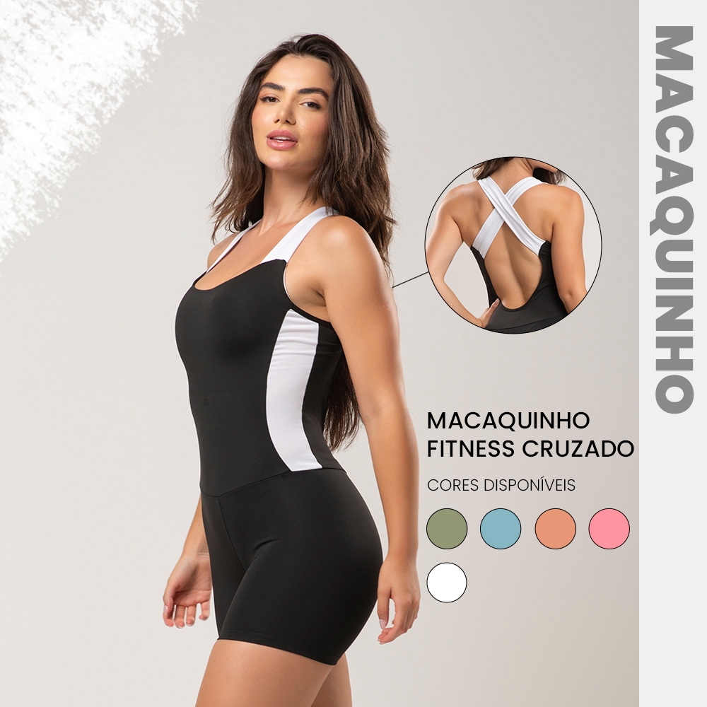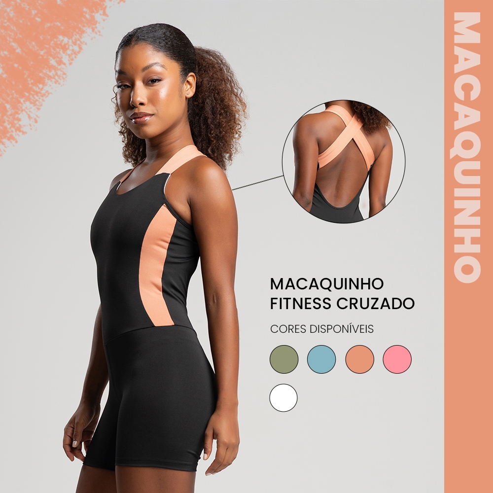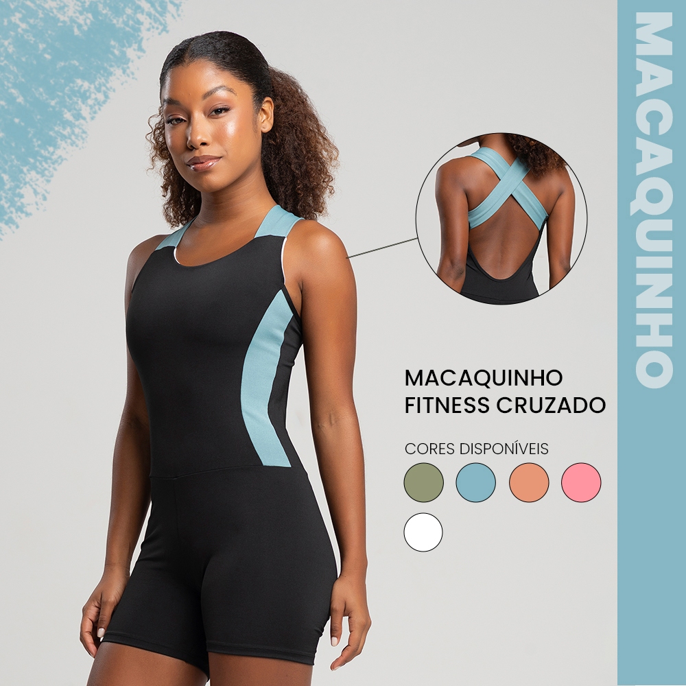 Macaquinho academia fitness cruzado com detalhe em cor