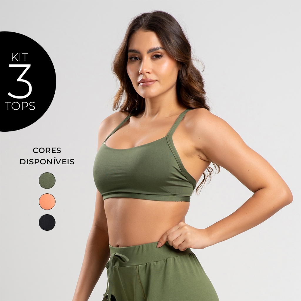 Kit 3 tops de academia duas tiras com forro - fitness - caminhada - casual