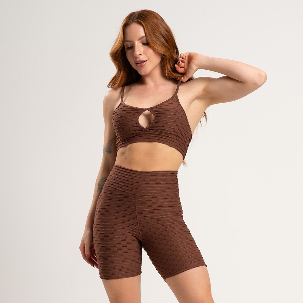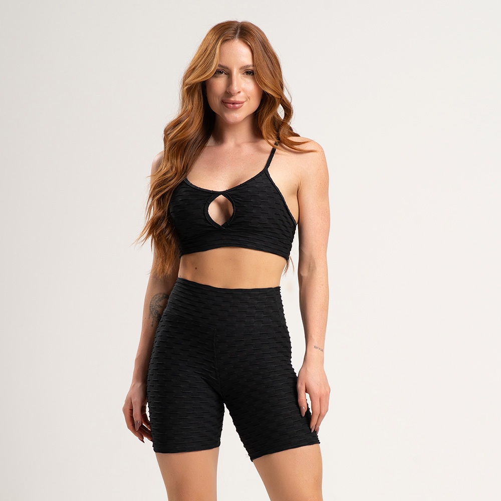 Conjunto fitness academia zero transparência short bolha e top alcinha bolha fitness