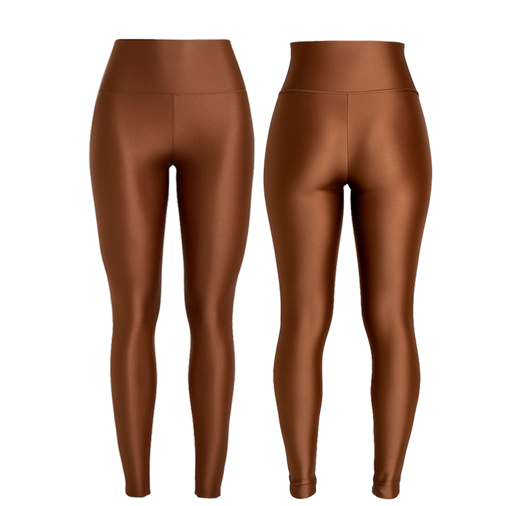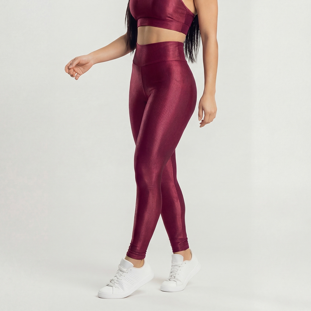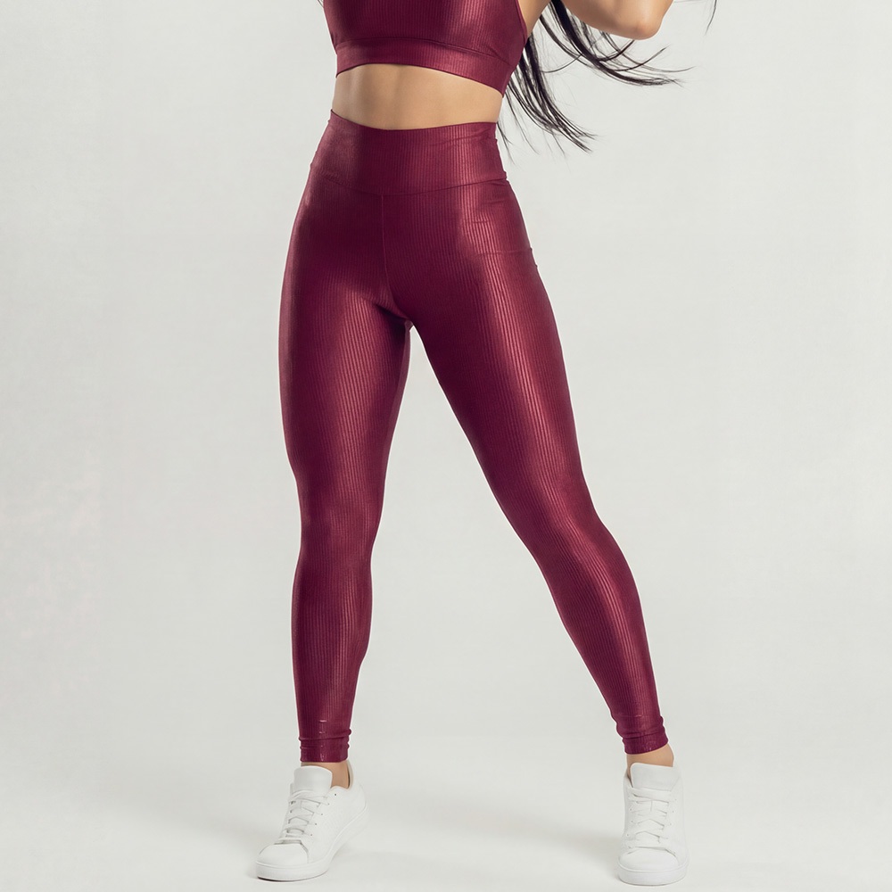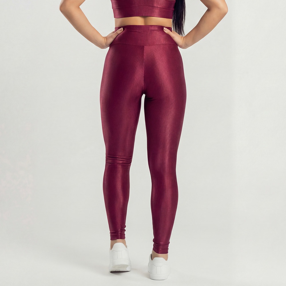Calça legging fitness feminina canelada cintura alta com brilho para treino