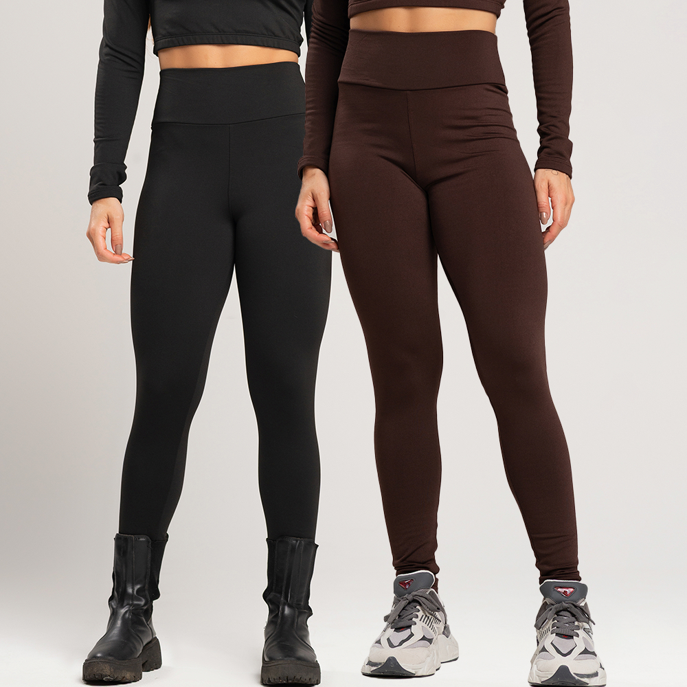Kit 2 calças peluciada outono inverno legging flanelada lisa