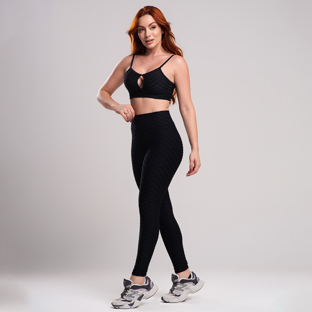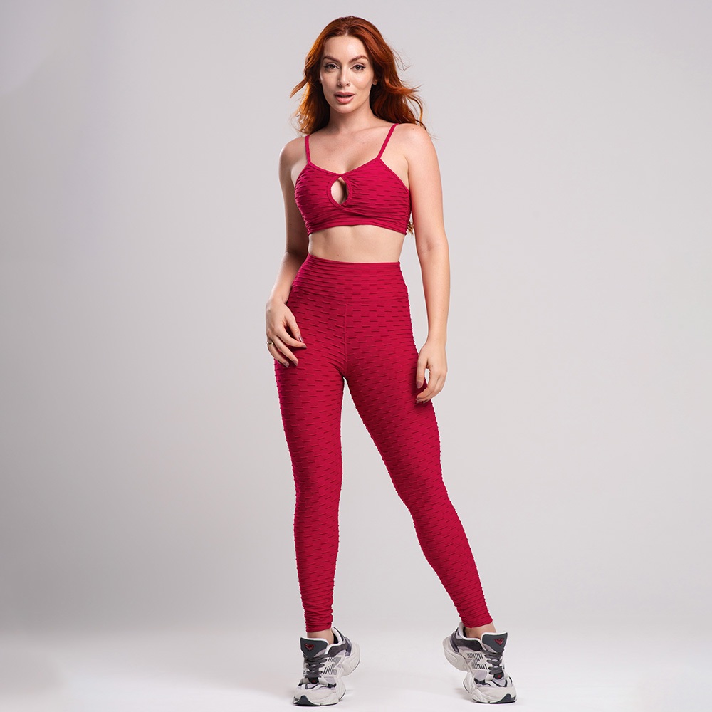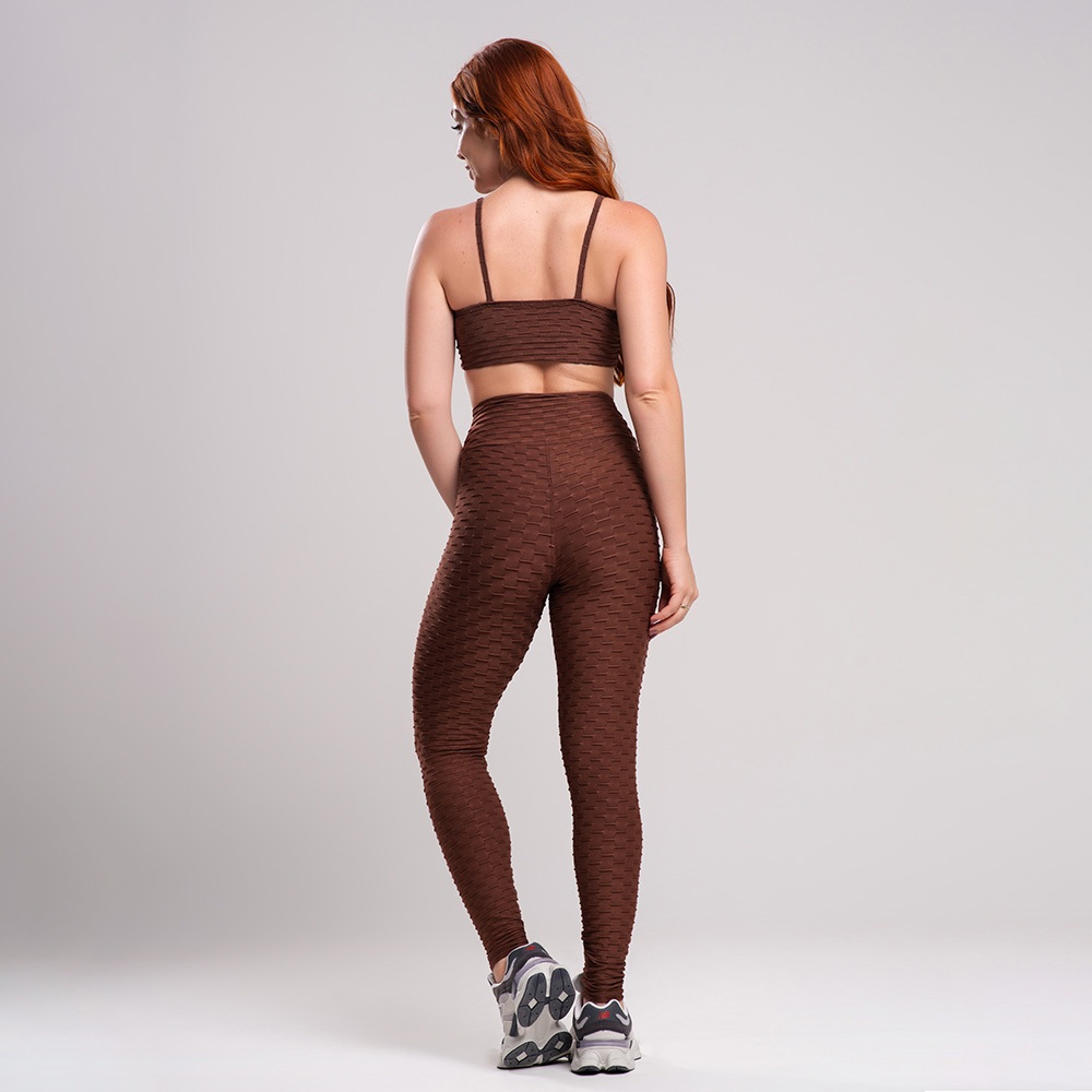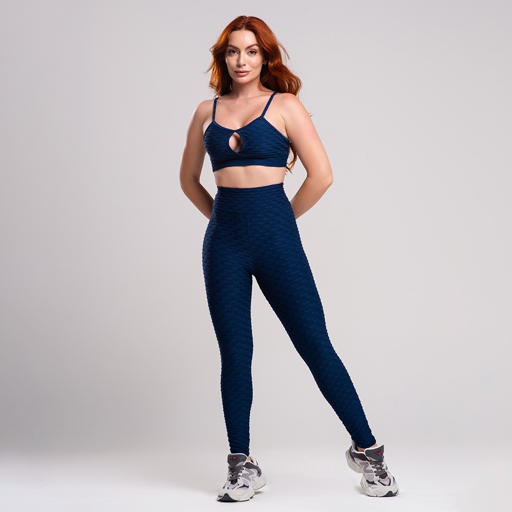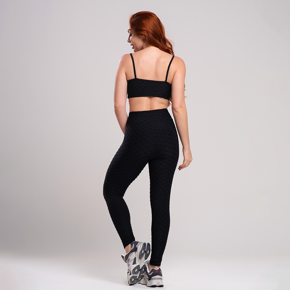 Conjunto Fitness Academia Feminino - Legging e Top Alcinha Bolha, Zero Transparência