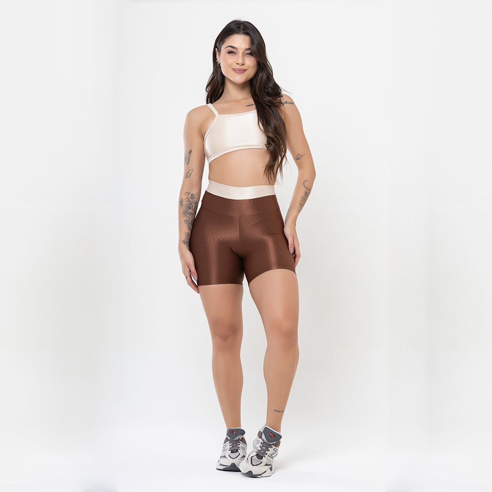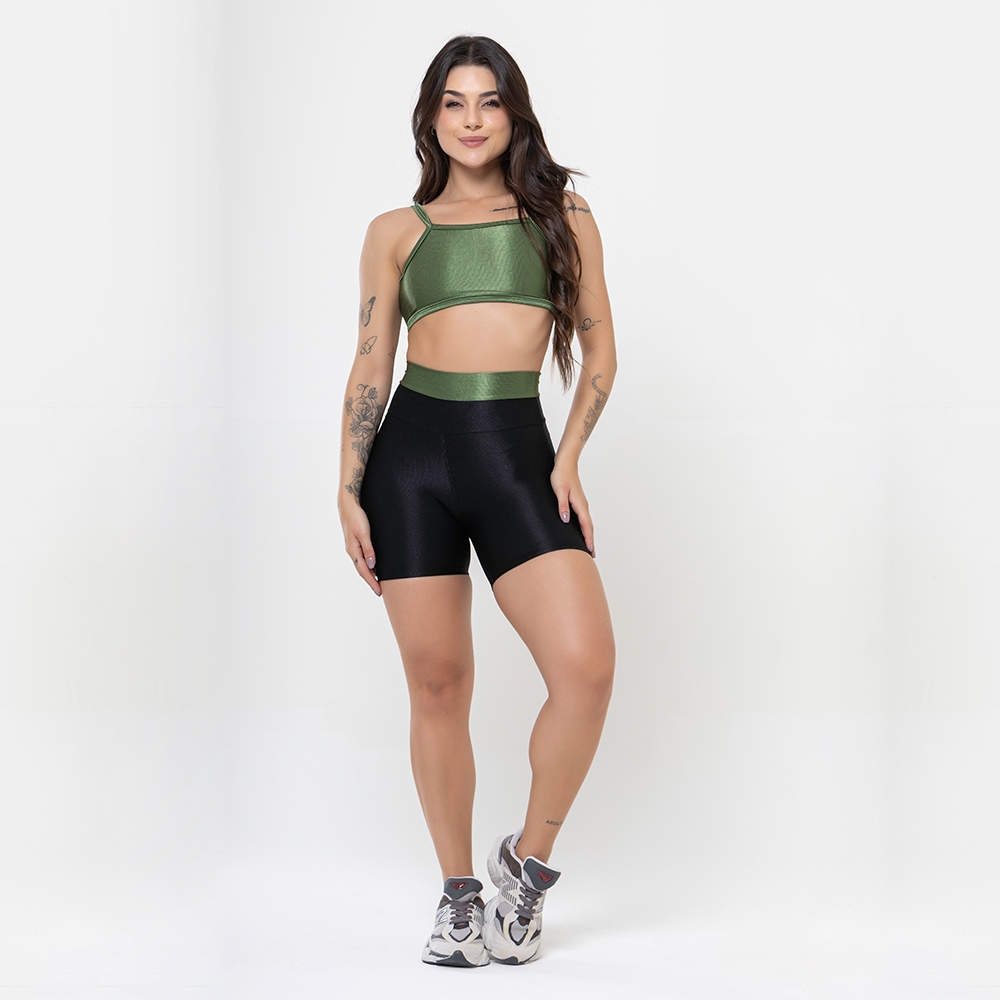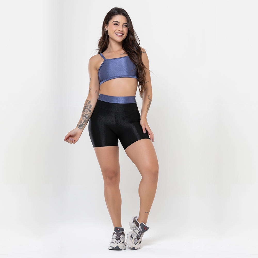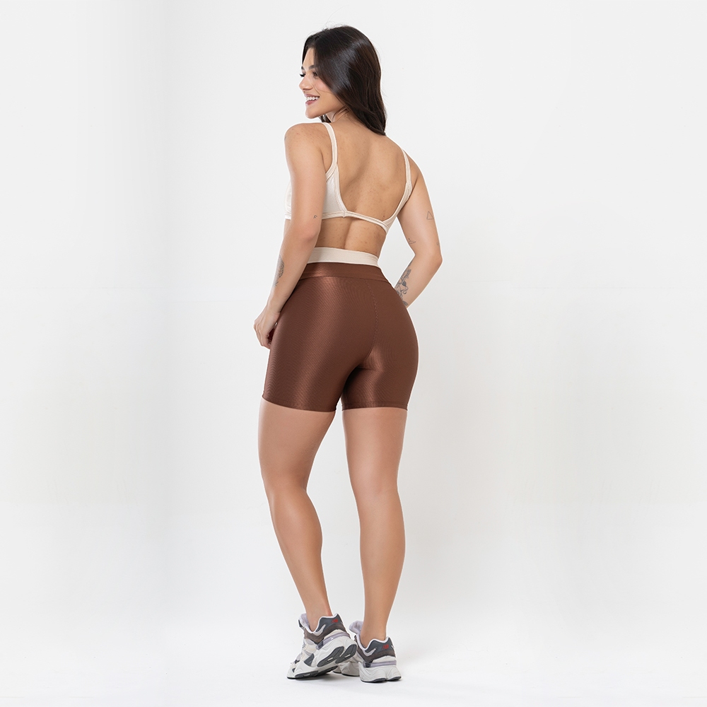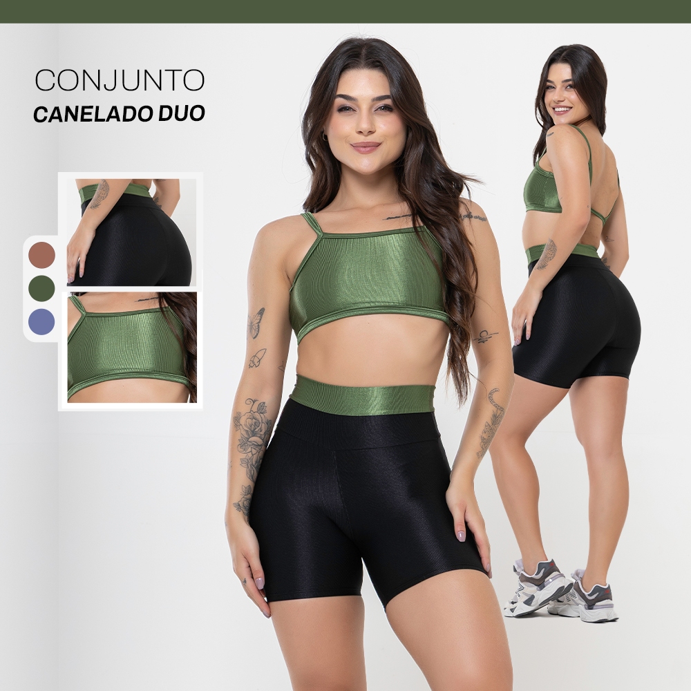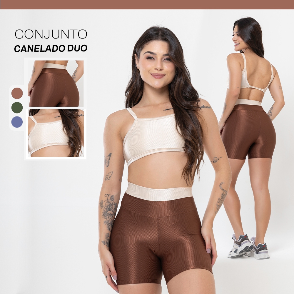 Conjunto Duo Canelado Brilhoso – Top Costas Abertas + Short Academia