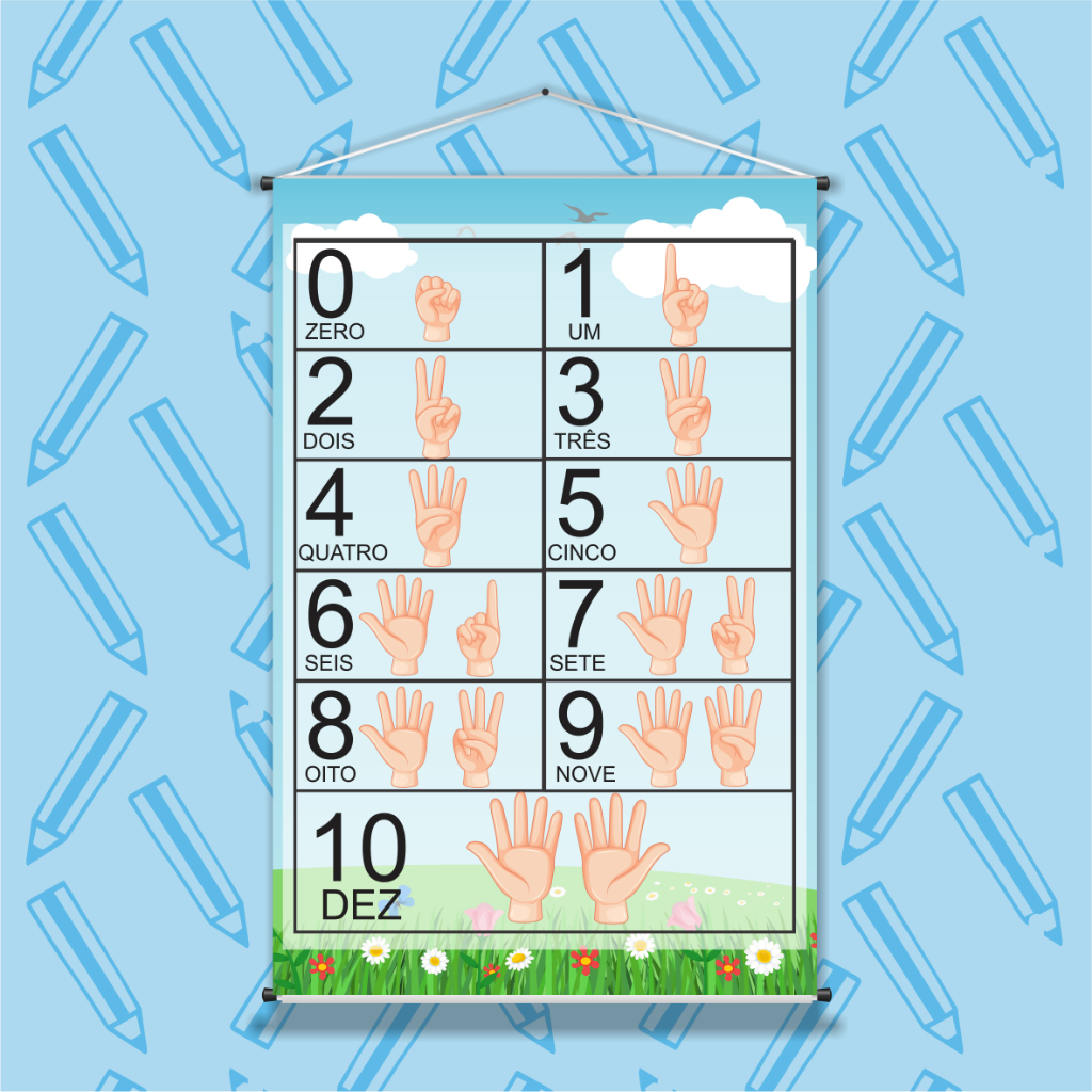 NÚMEROS B013 - Banner Pedagógico, Educativo, Infantil, números de 1 á 10