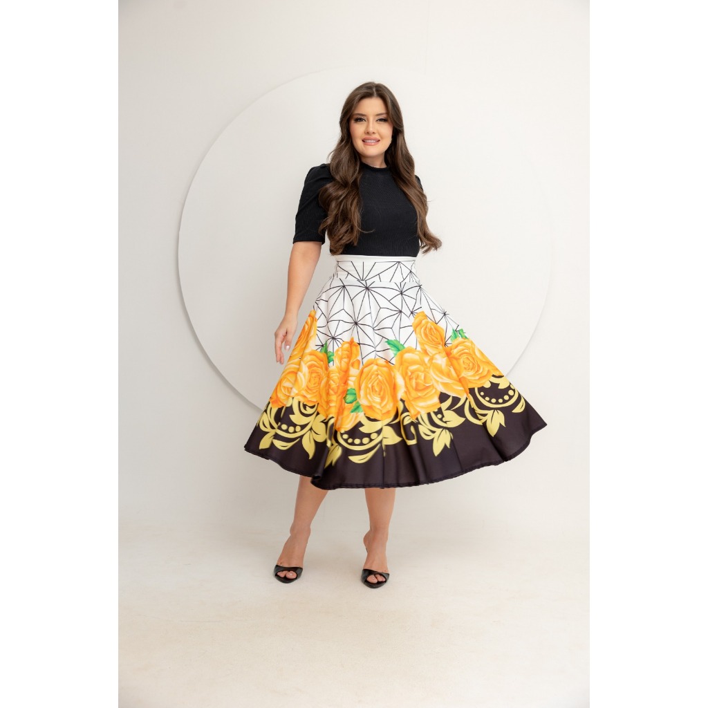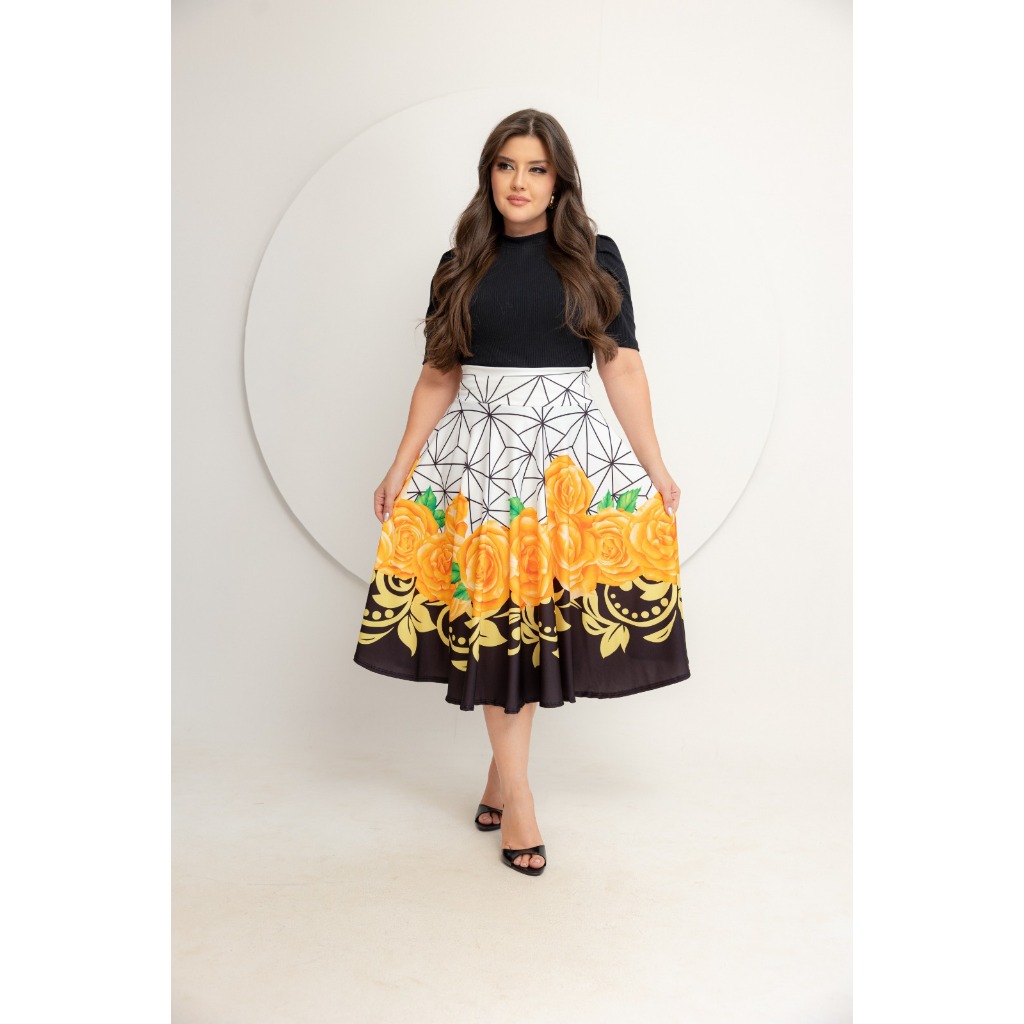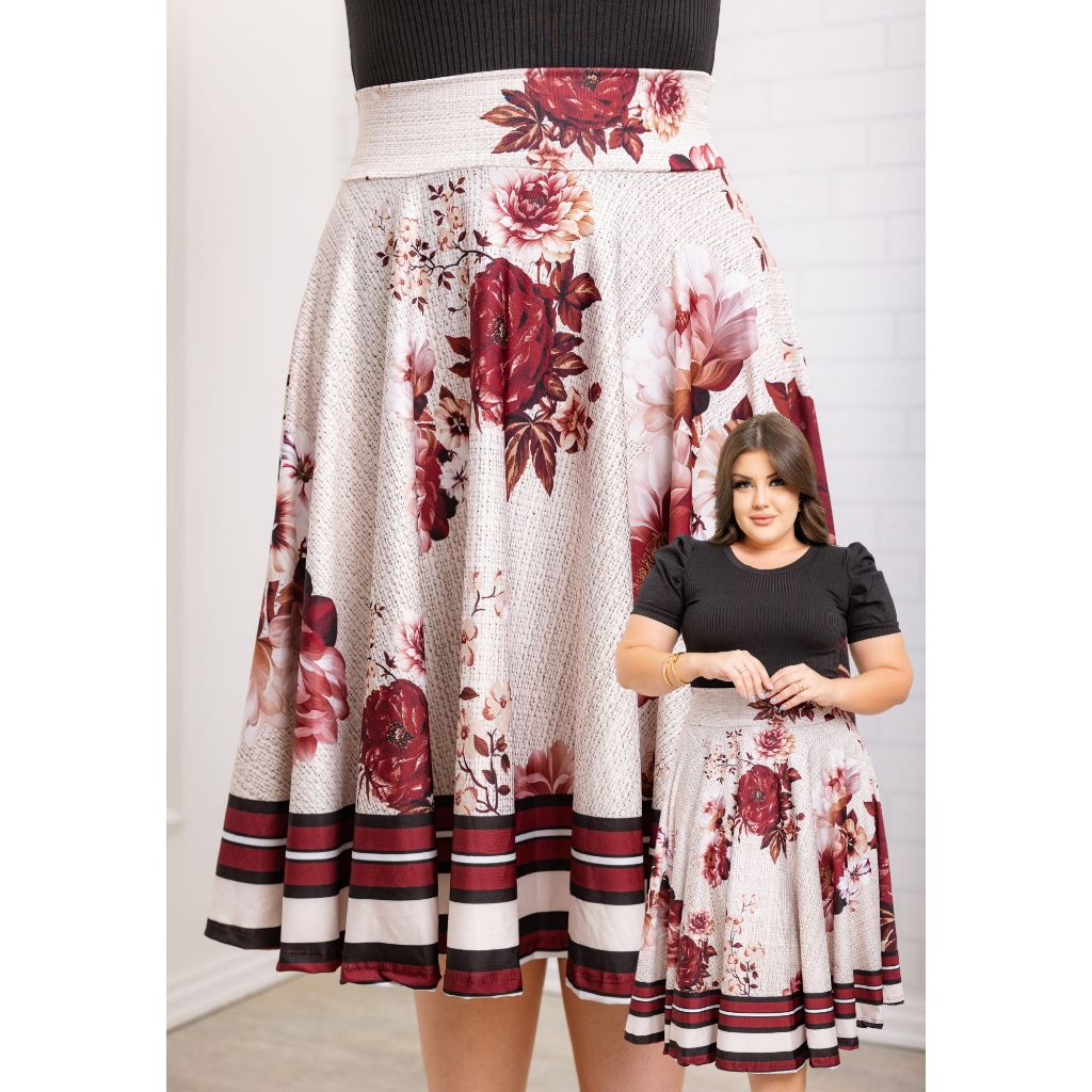 Saia Midi Godê Estampas Diversas Todos Tamanhos Moda Feminina