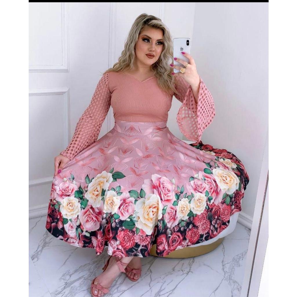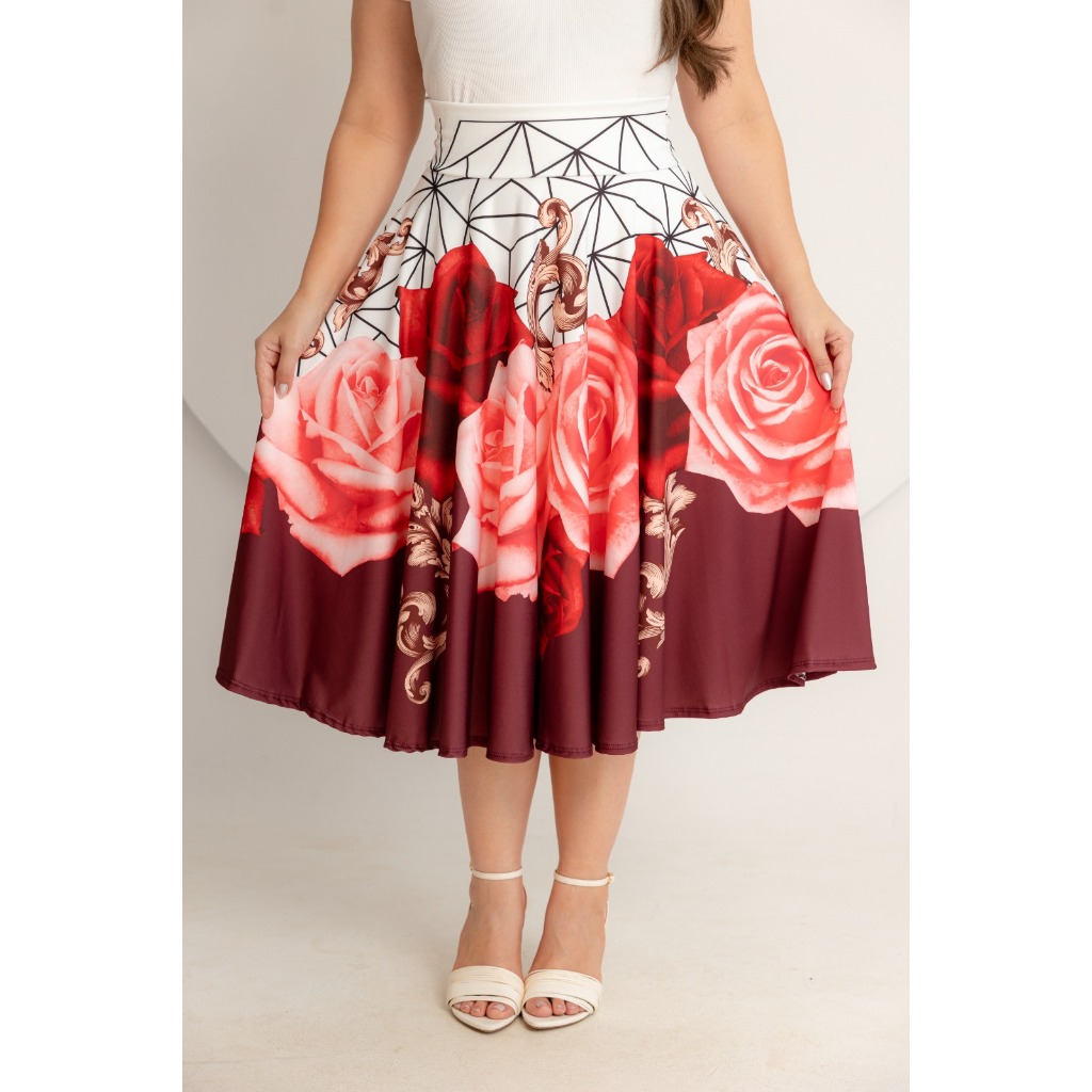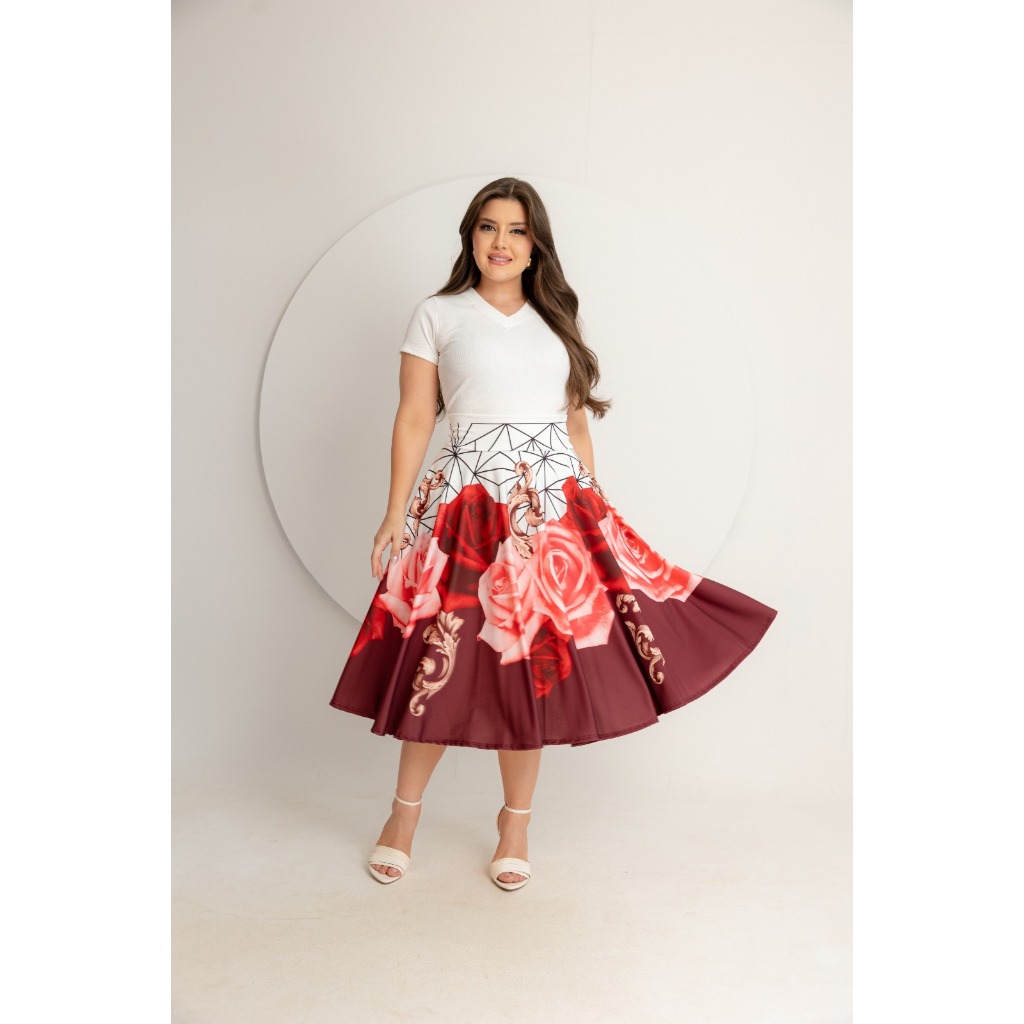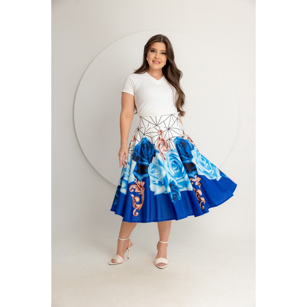 Saia Midi Godê Estampas Diversas Todos Tamanhos Moda Feminina