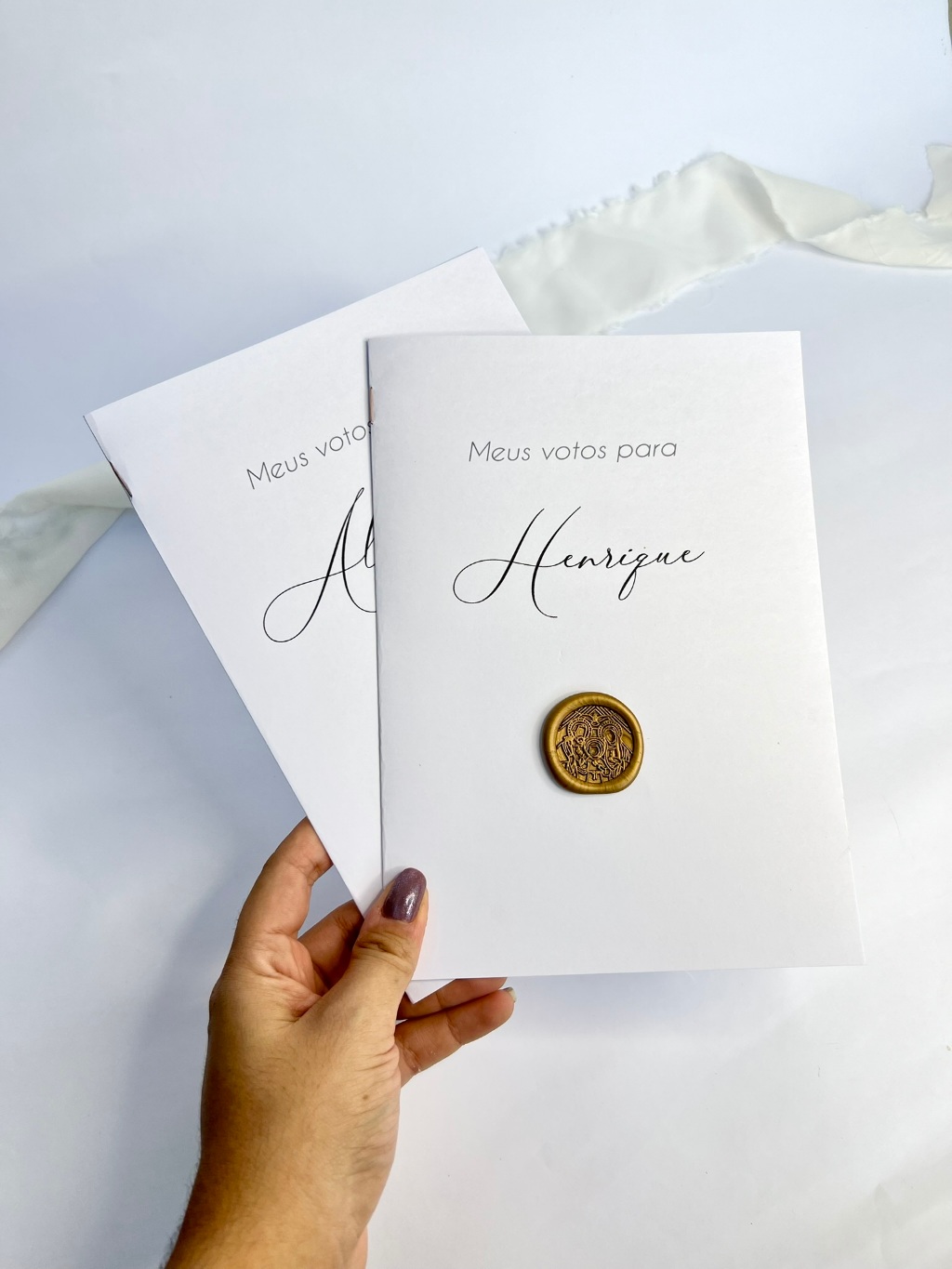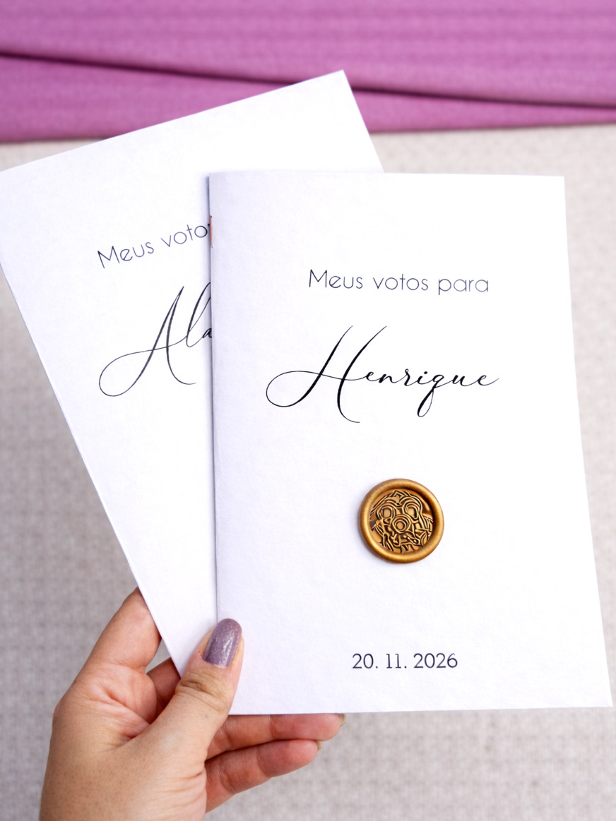 Par de Caderno de Votos Casamento com Lacre de Cera - "Meus votos para"