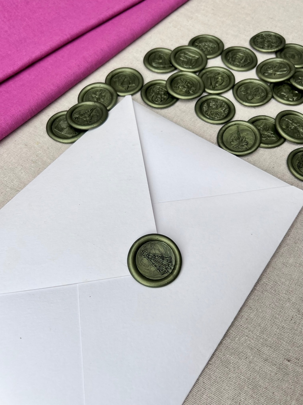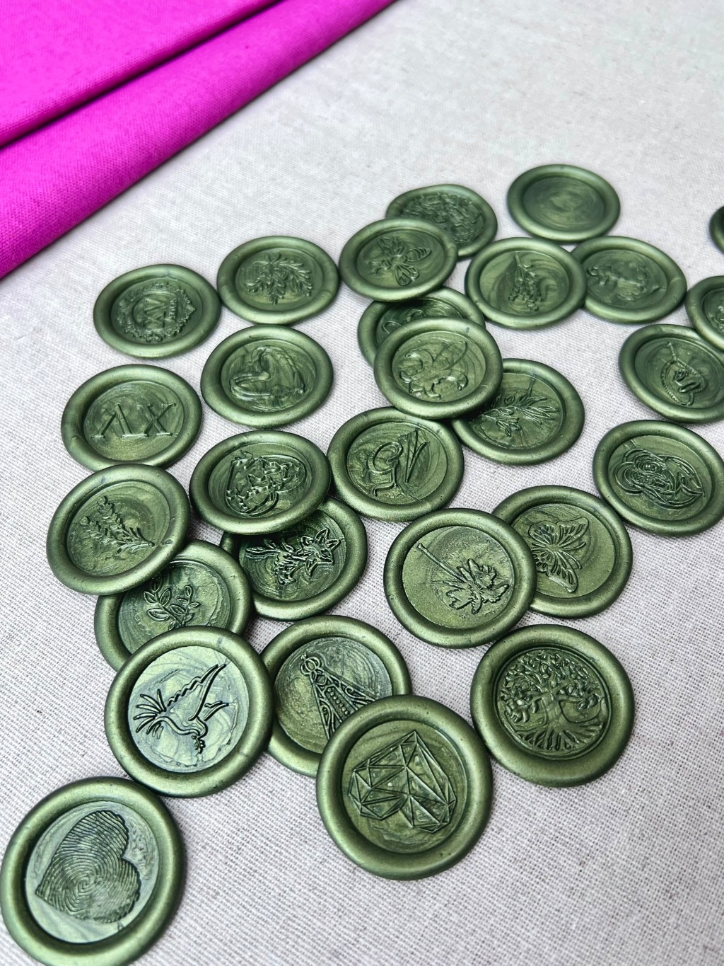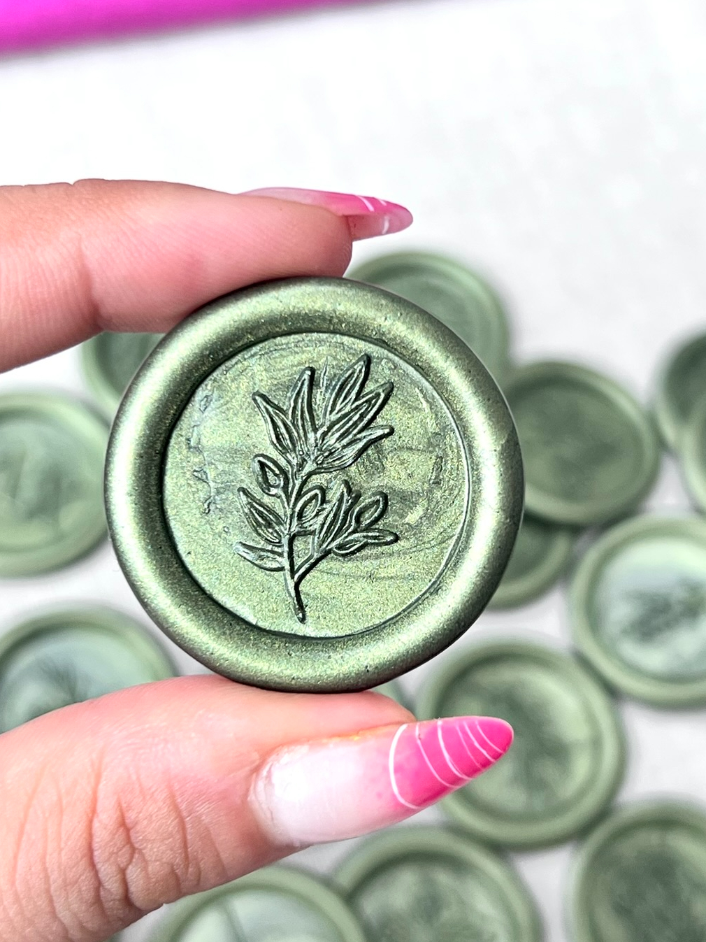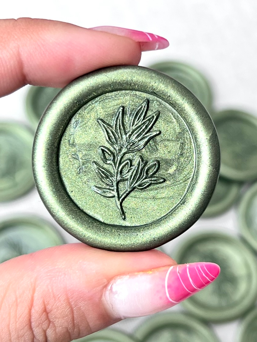 10 Lacre de Cera Convite Casamento Alecrim Verde Oliva - Raminho 01