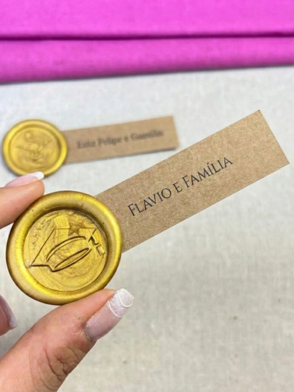 10 Tag com Nome Personalizado com Lacre de Cera para Convite de Formatura