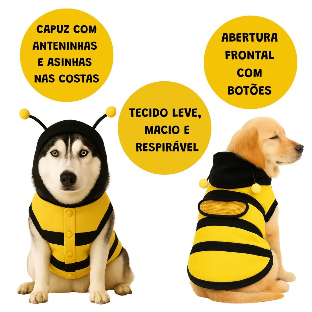 Roupinha de Cachorro Gato Fantasia Abelha Roupa com Capuz Divertido Pet