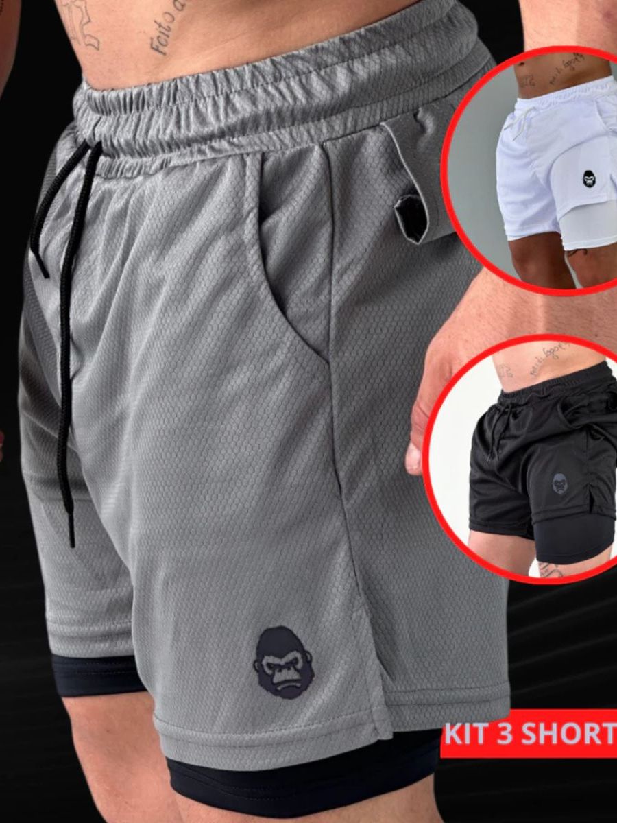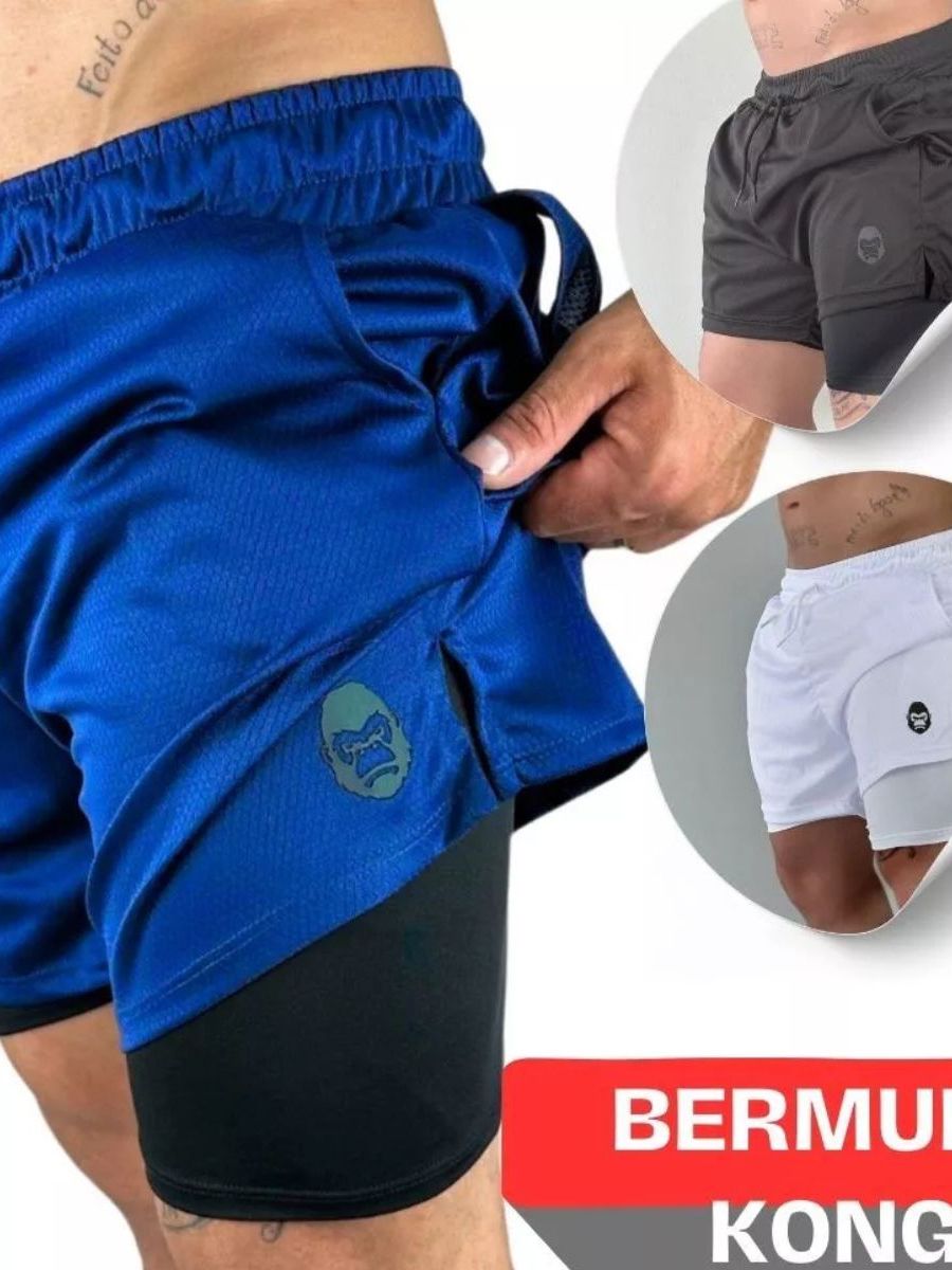 Shorts Masculino 2 Em 1 Kong Com Bolso Interno