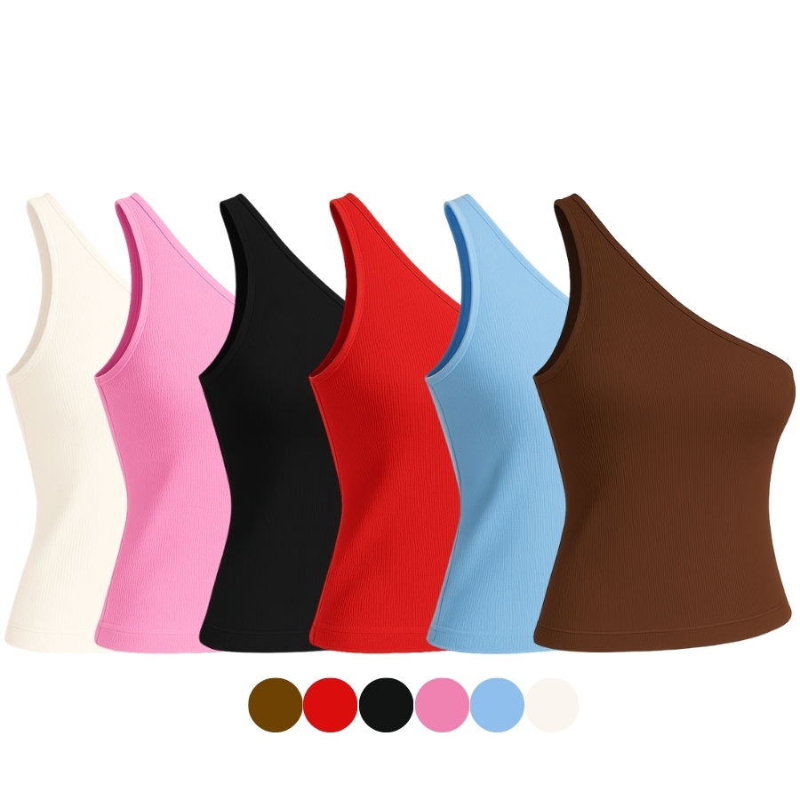 Blusa Cropped Um Ombro Feminina Ribana Canelada Forro Duplo Confortável
