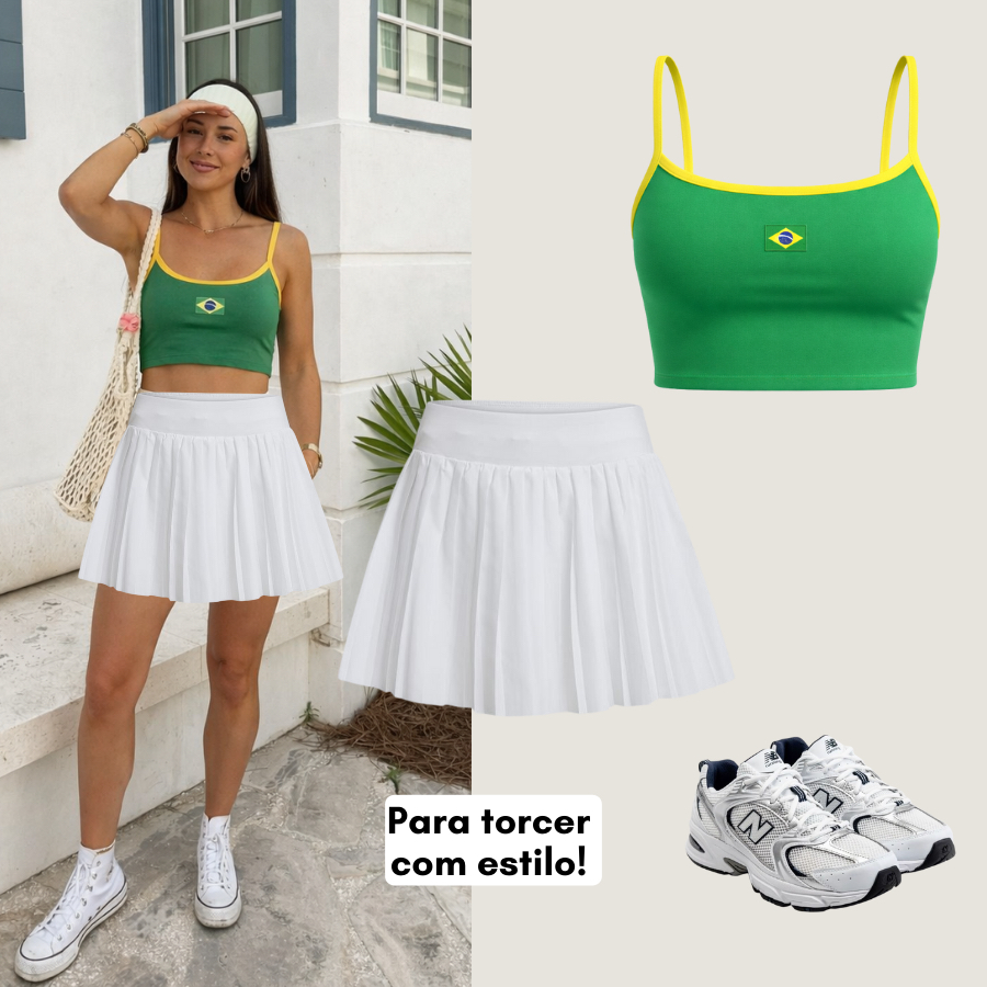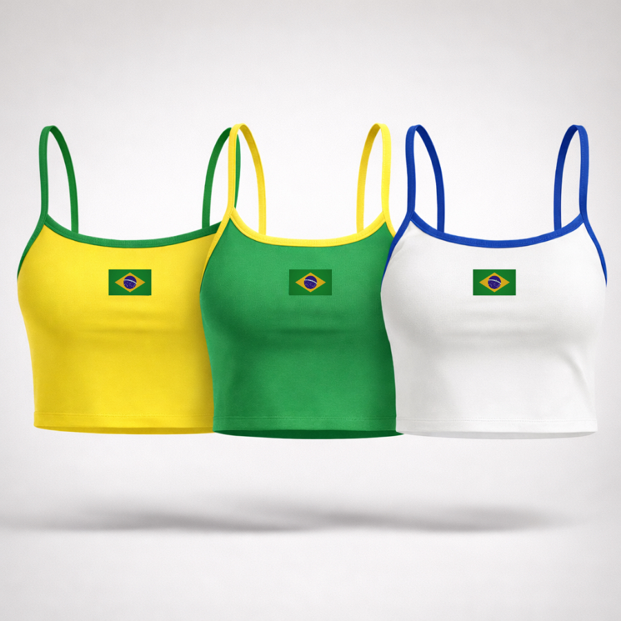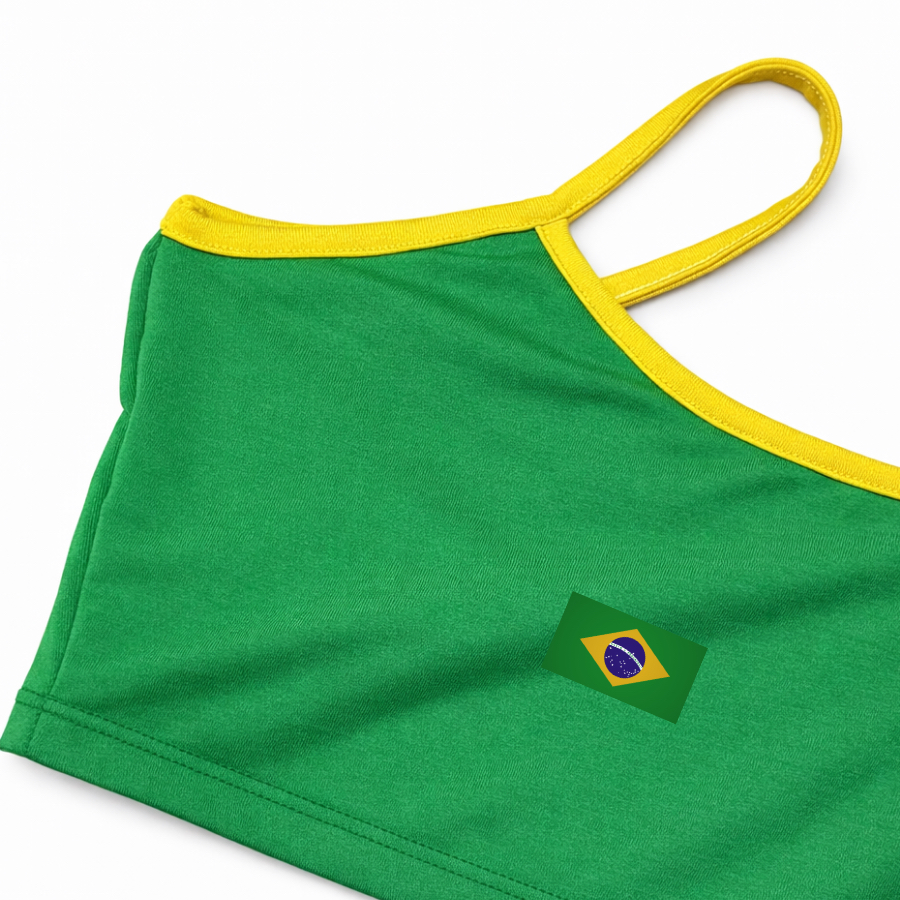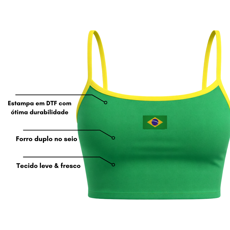 Cropped Brasil Feminino Verde e Amarelo Copa do Mundo Regata Alça Look Torcida