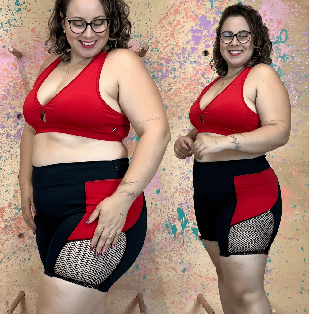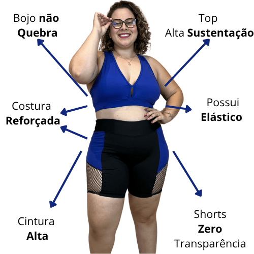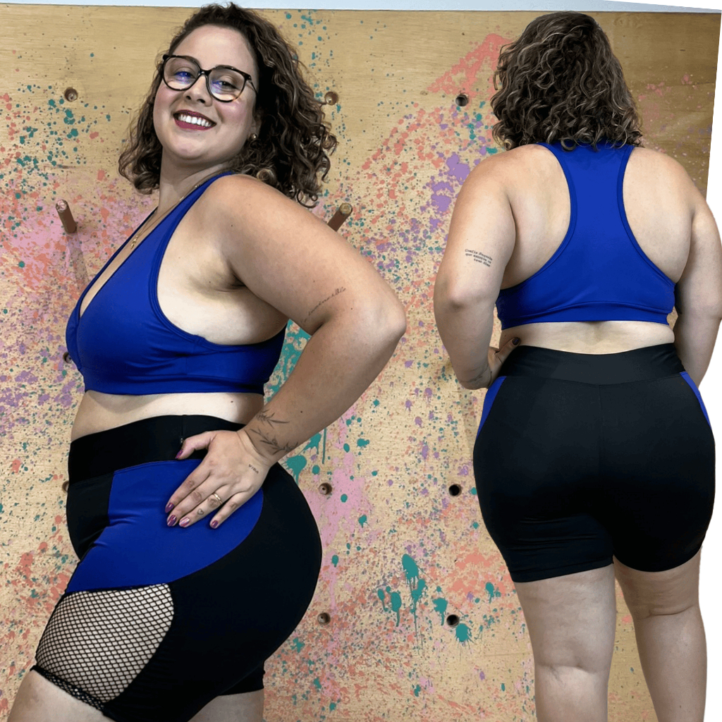 Conjunto Academia Feminino Kit com 2 peças 1 Bermudas Detalhe 1 Tops Nadador Plus Size Curve Fitness
