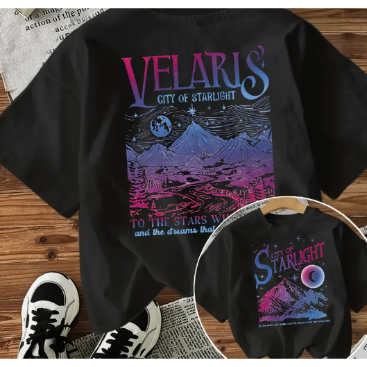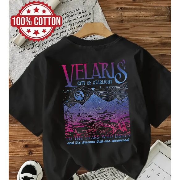 Camiseta Velaris Literária Feminina Preto Nerd T-Shirt Universo ACOTAR Fantasia Nerd harajuku Em Quadrinhos