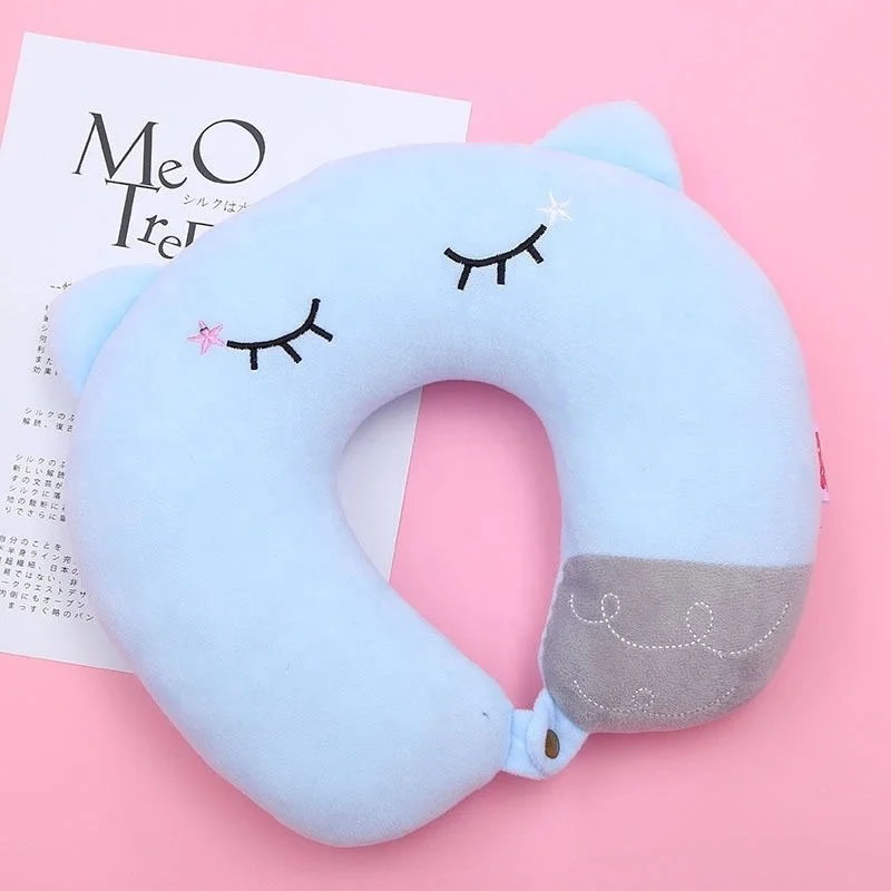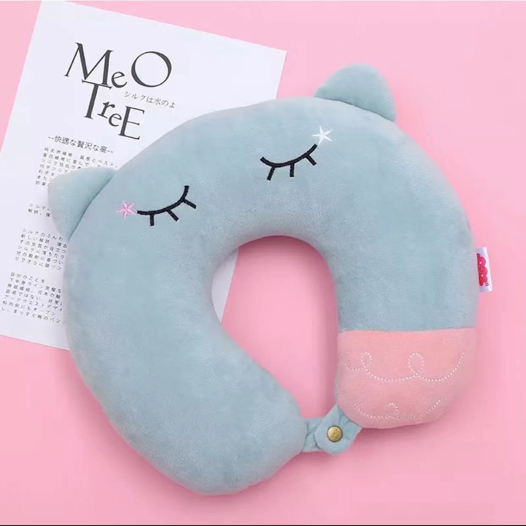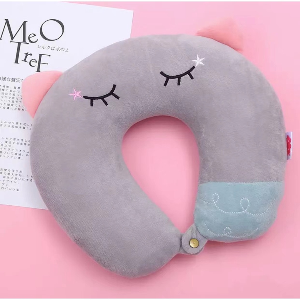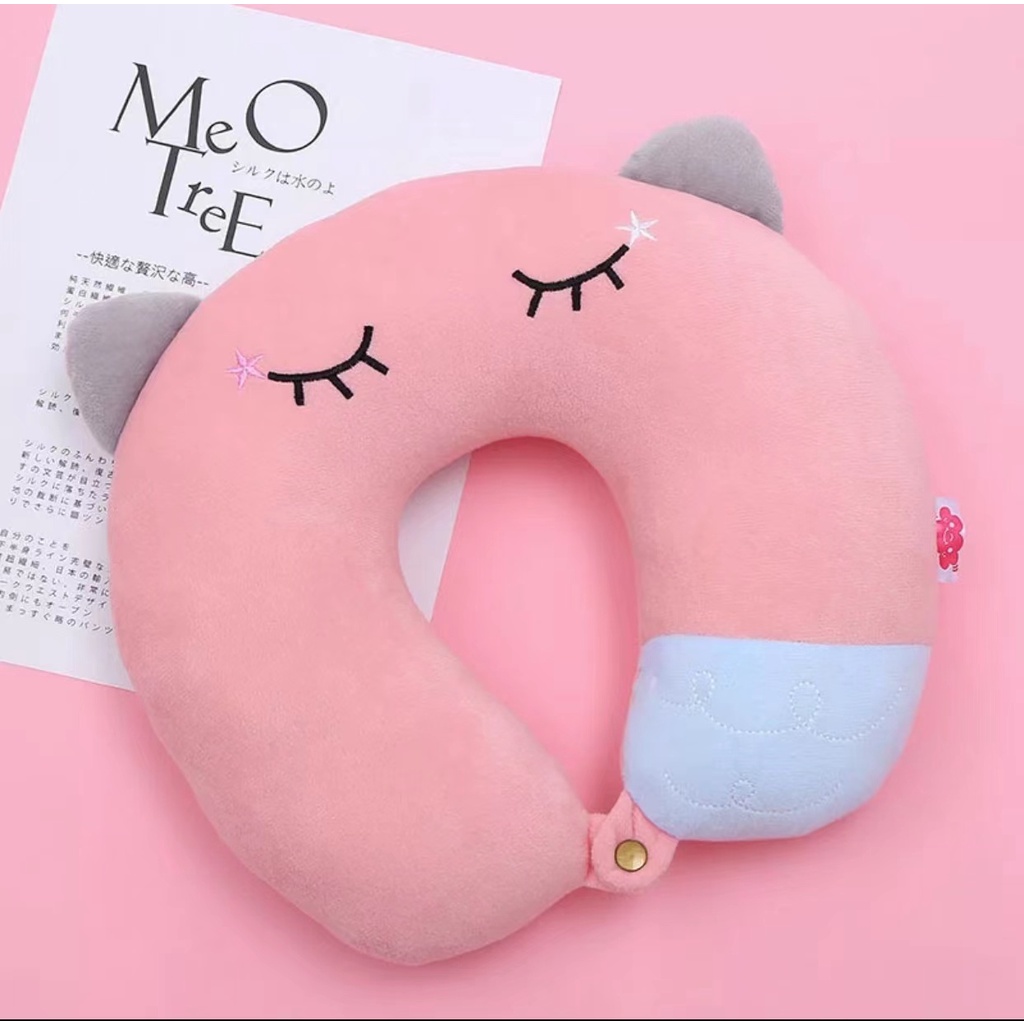 Almofada de pescoço para viagem com orelha de gato e estampa de cilios