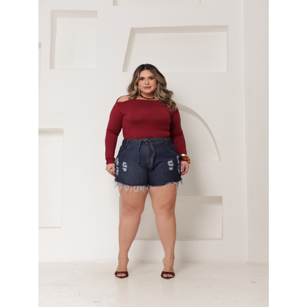 Short jeans plus size desfiado sem lycra