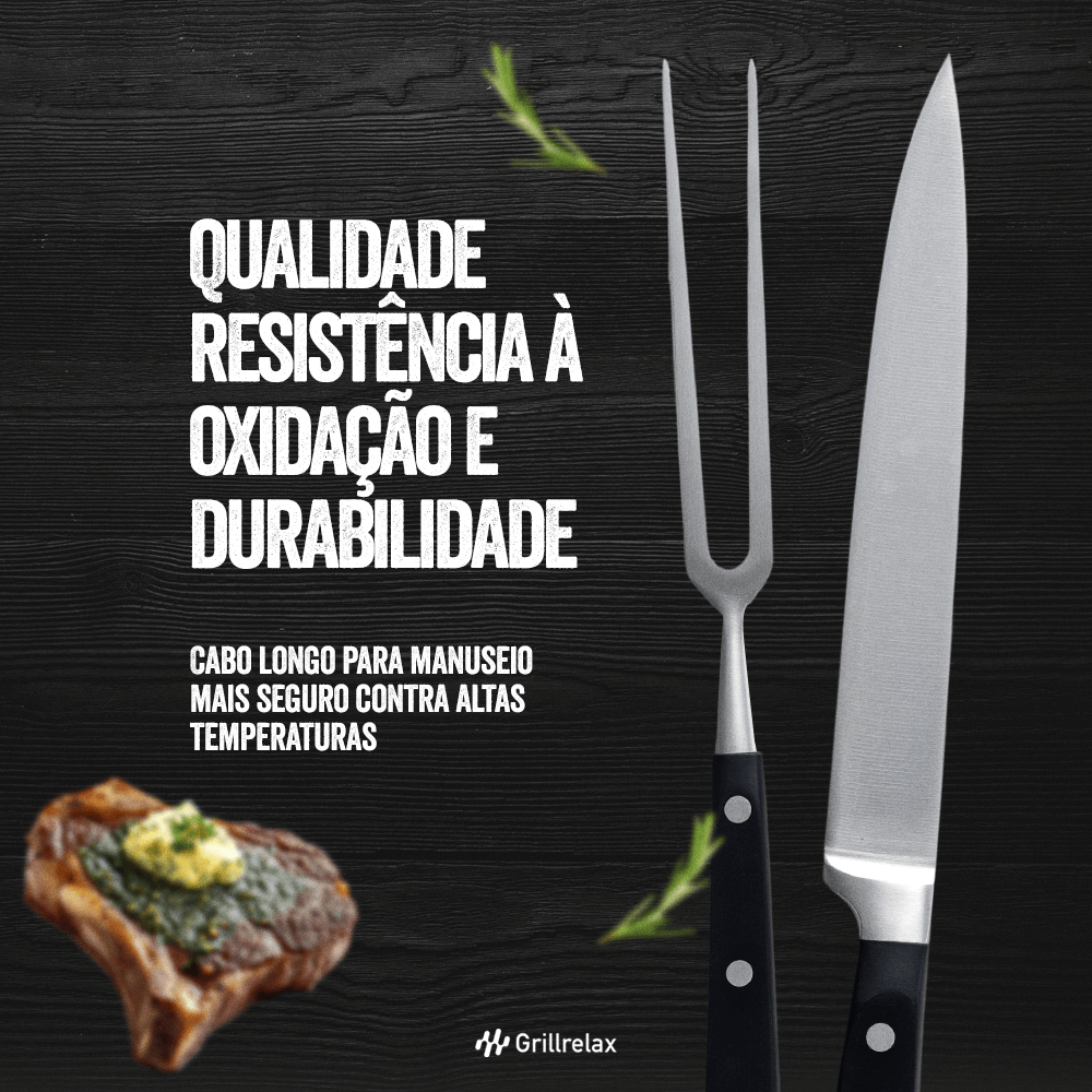 Kit Faca e Garfo Premium Forjado Aço Alta Qualidade para churrasco Grillrelax