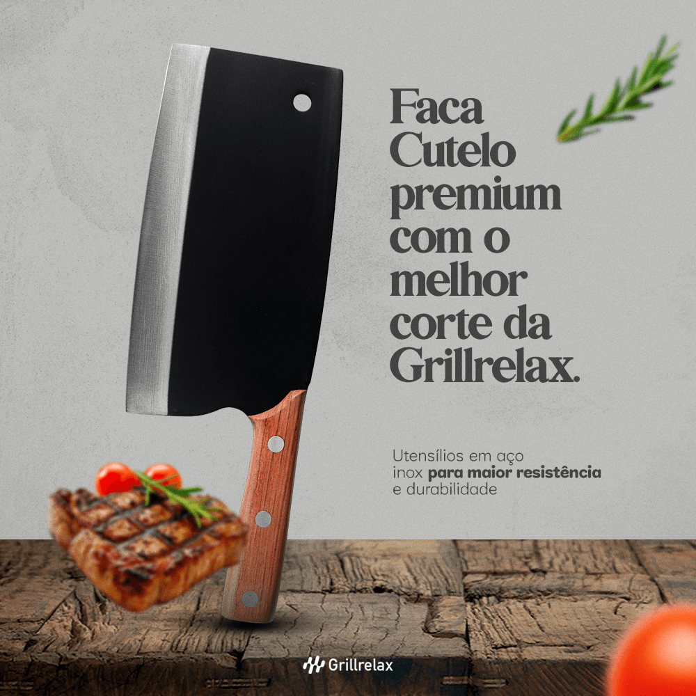 Faca Cutela Preta Premium Alta Qualidade Faiada Cozinha Culinária Corte Carne Osso GrillRelax