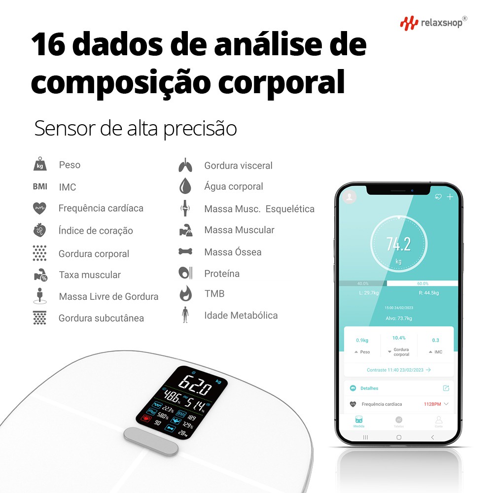 BALANÇA BIOIMPEDÂNCIA DIGITAL BIO PLUS VIDRO TEMPERADO