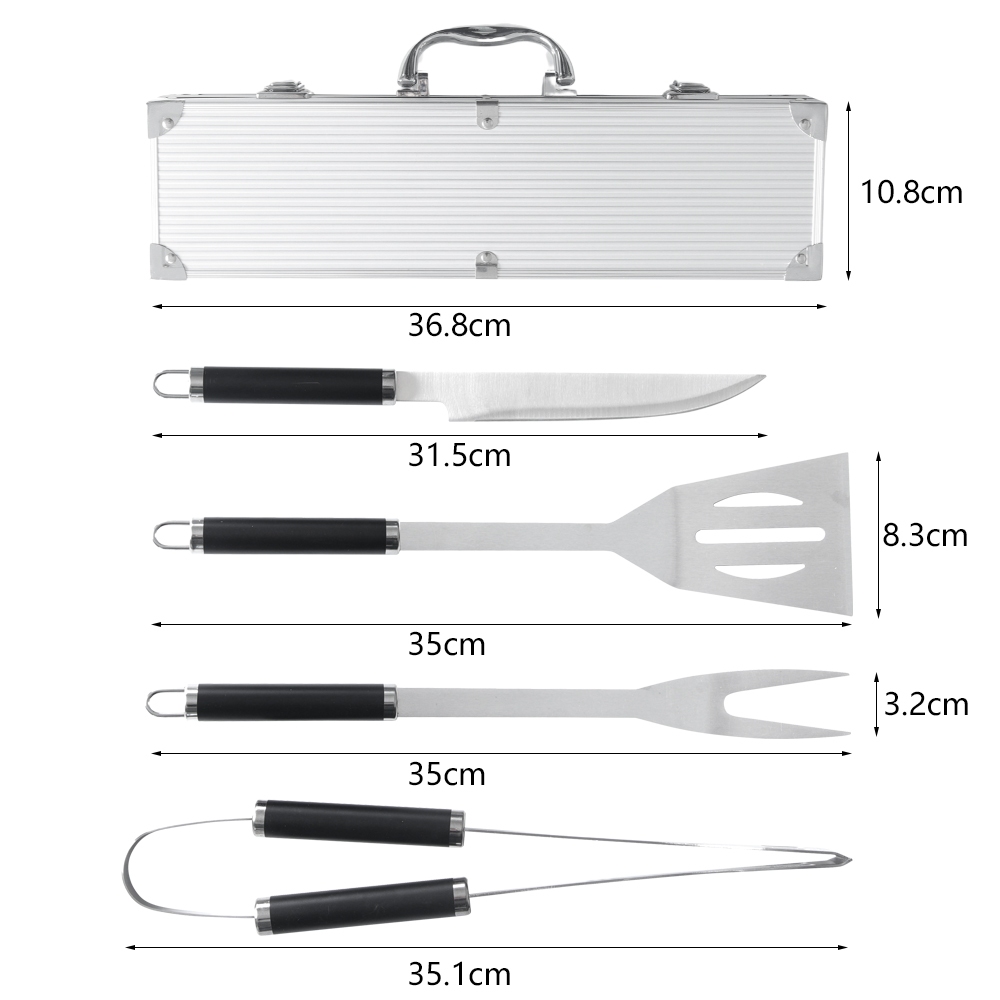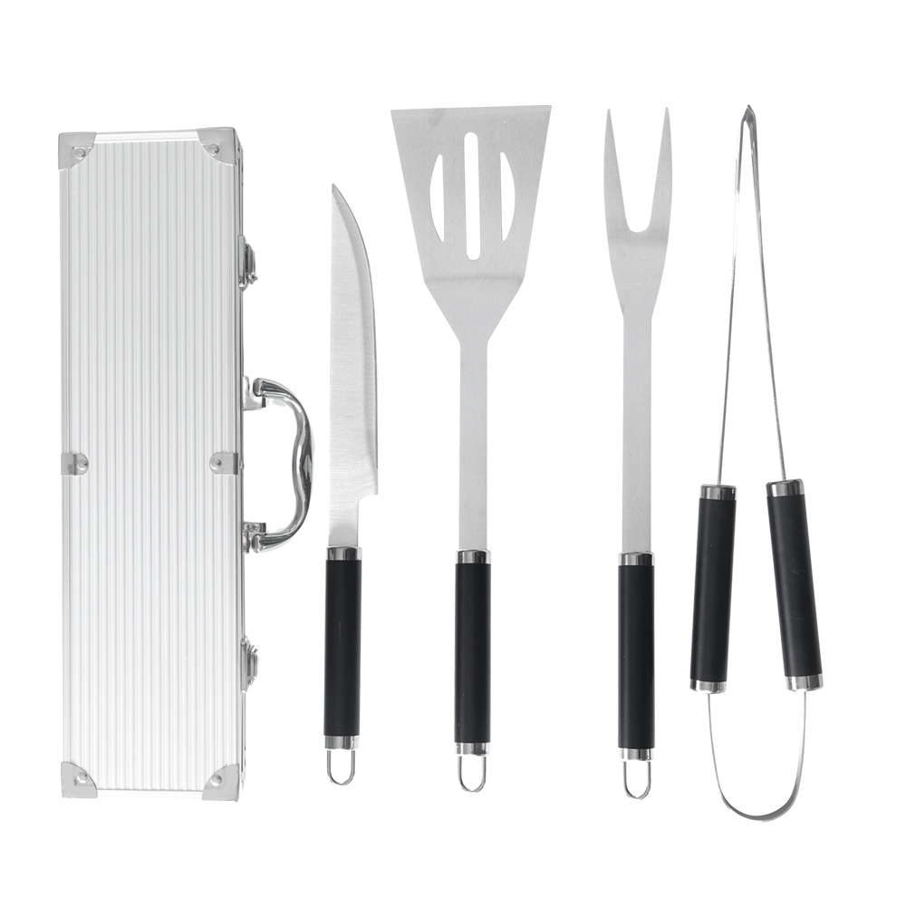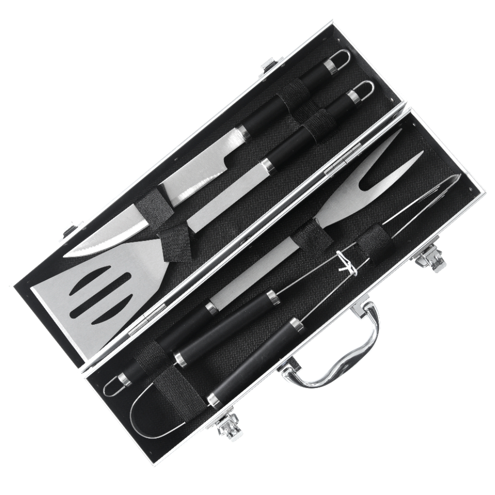 Kit Churrasco 5 Peças Aço Inox Com Maleta de Transporte Aluminio Faca Espatula Garfo e Pegador Grillrelax
