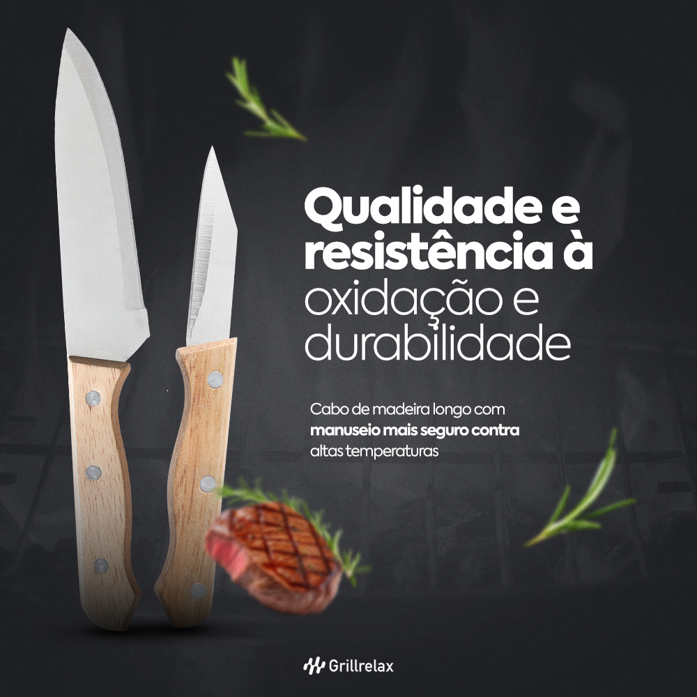 Kit Churrasco 9 Peças Aço Inox e Estojo Garfo Faca Amolador Tábua Resistente Grillrelax