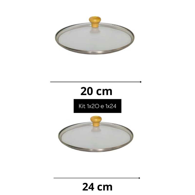 TAMPA DE VIDRO TEMPERADO Nª 10 12 14 16 18 20 22 24 26 28 30 32 34 CM -PARA JOGO DE PANELA E FRIGIDEIRA-POMEL MADEIRA