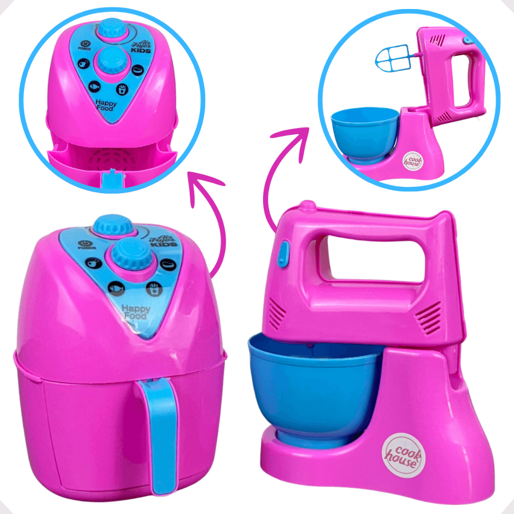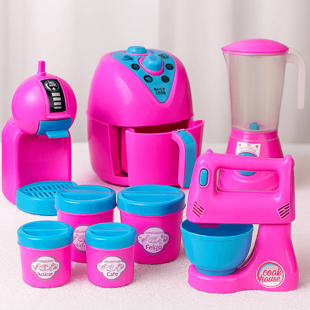 Kit Cozinha Infantil de Brinquedo Modelo Novo Eletrodomésticos Utensílios C/ 8 peças Acessórios