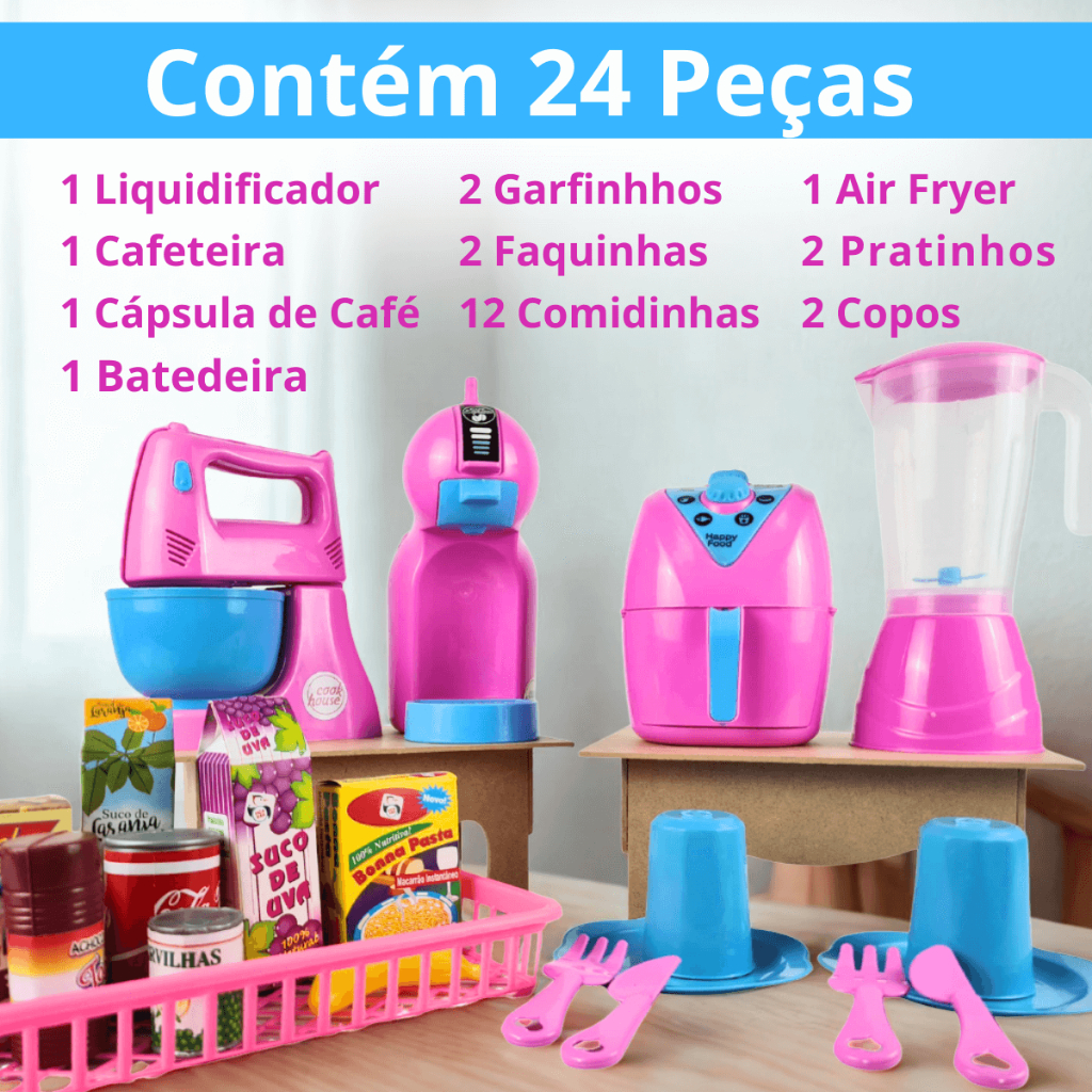 Kit Cozinha Infantil 25pcs Brinquedo Eletrodomésticos Comidinhas Acessórios
