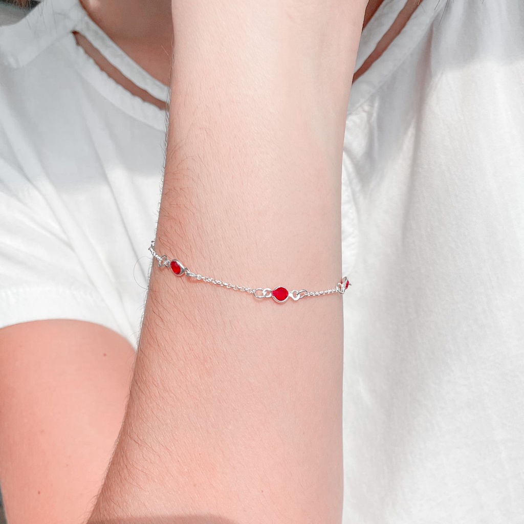Pulseira Pontos de Luz Vermelho 4mm Prata 925