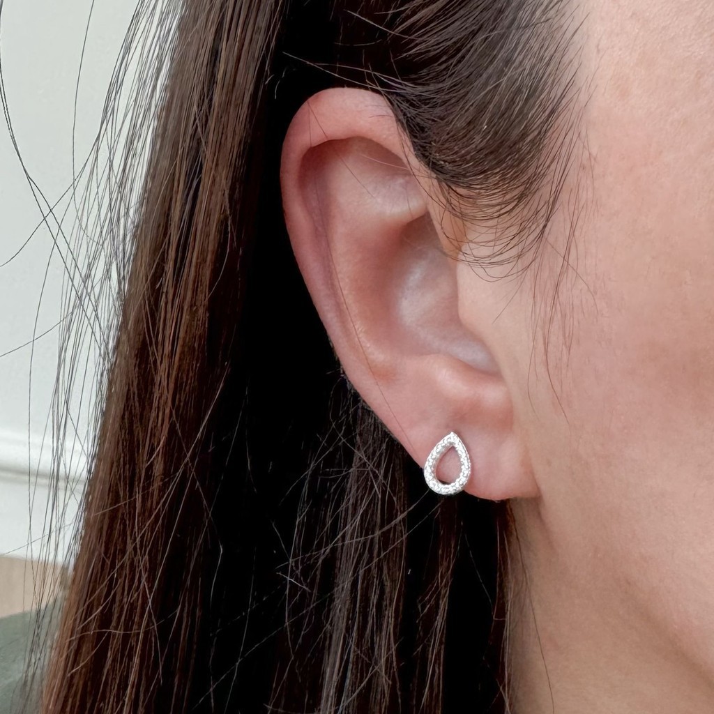 Brinco Gota Contorno Cravejado Prata 925